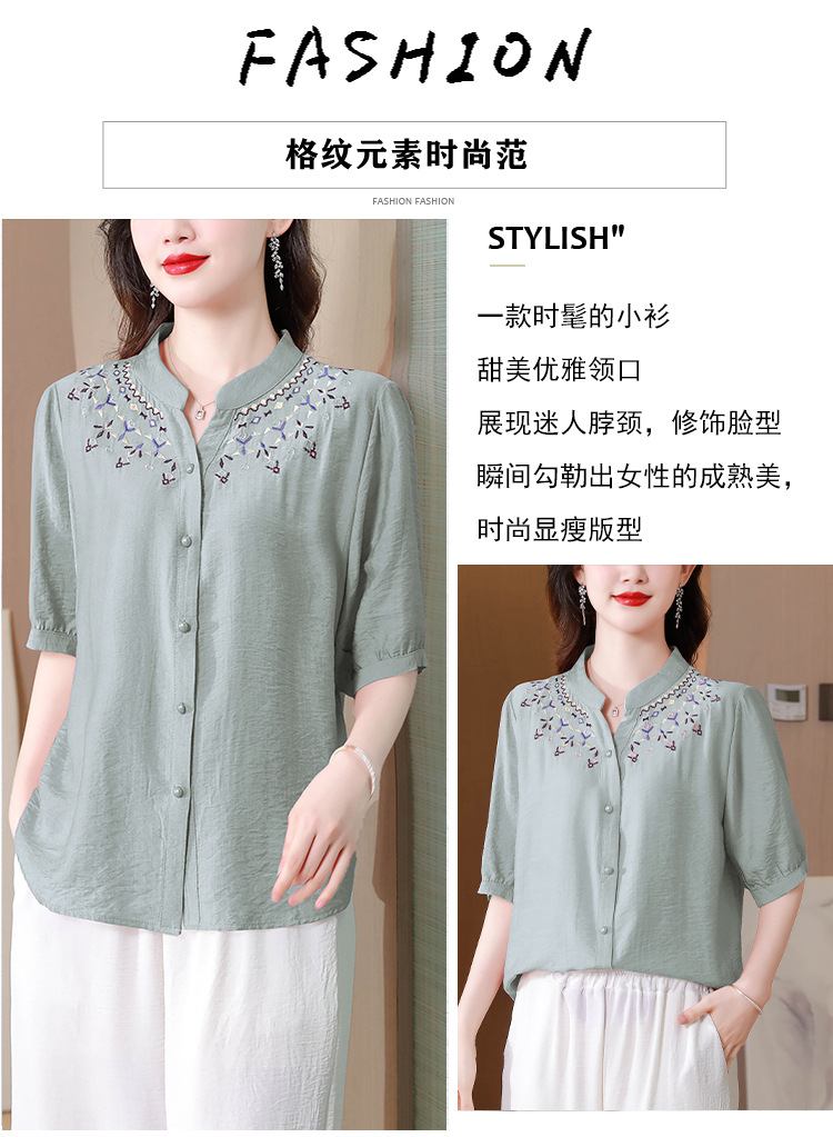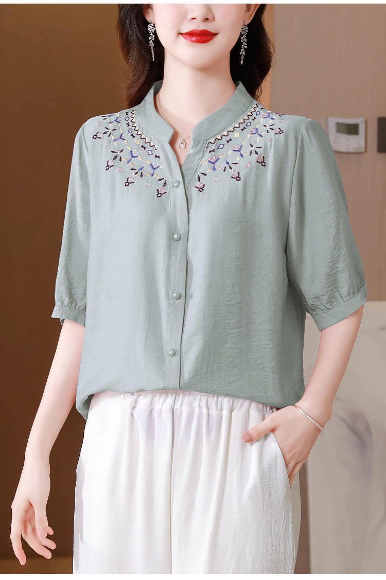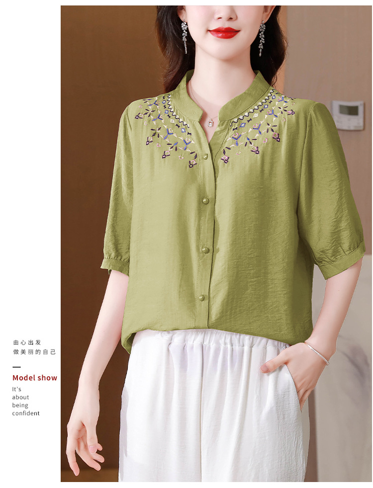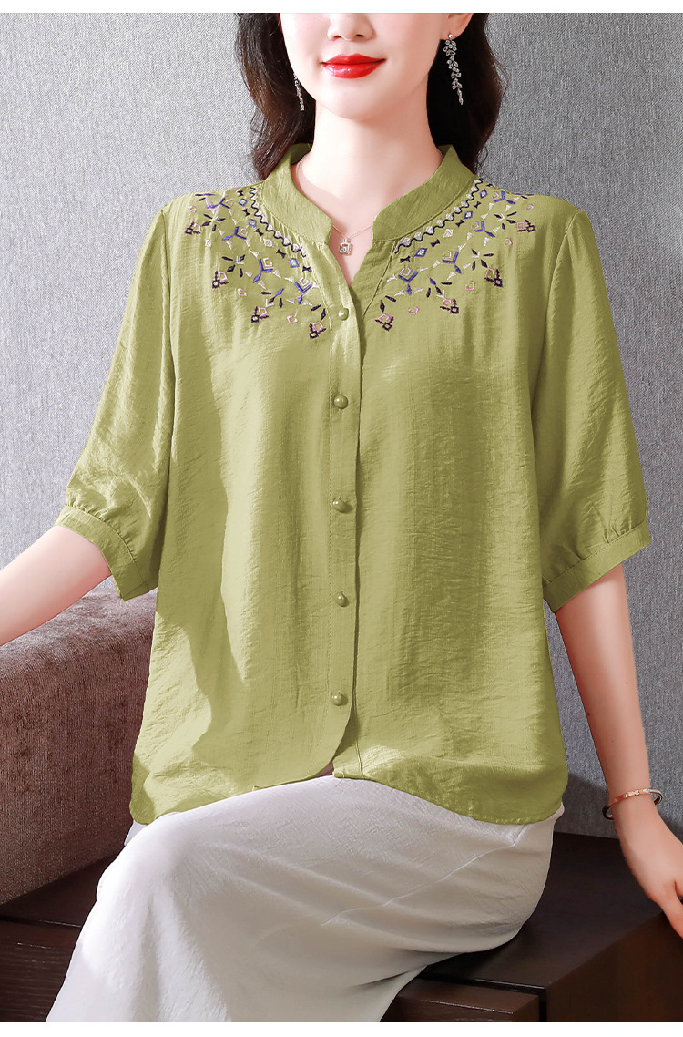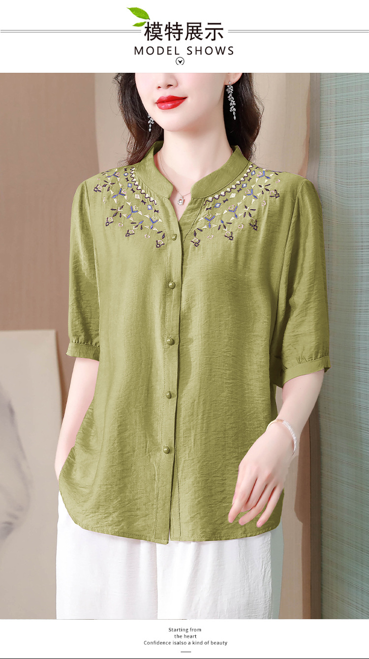 2023 여름 새로운 예술적 복고풍 에스닉 스타일 면과 린넨 자수 셔츠 여성의 느슨한 셔츠 우아한 여성 의류스토어 가기
