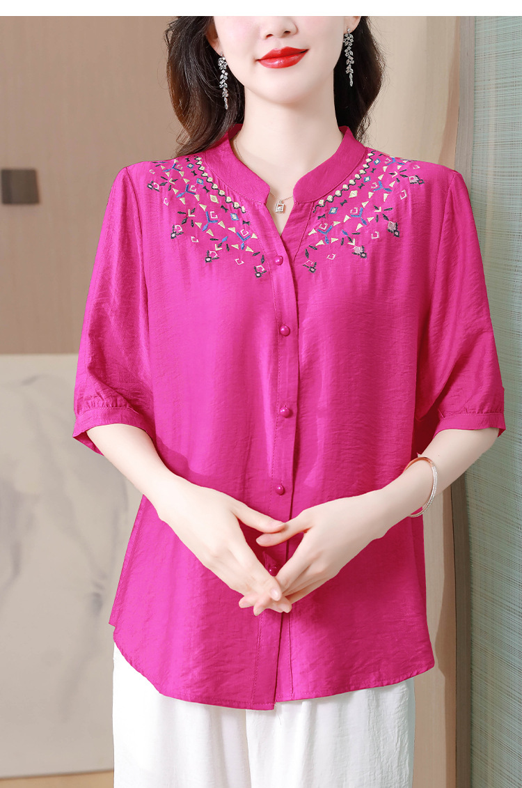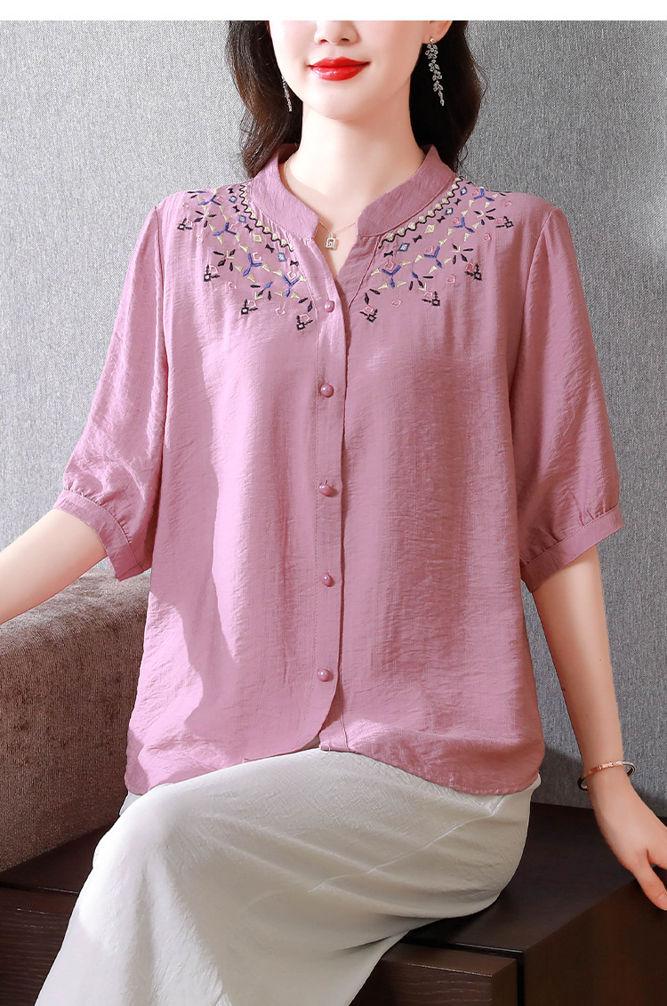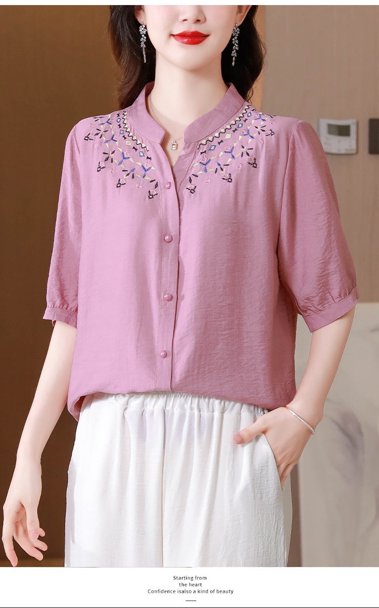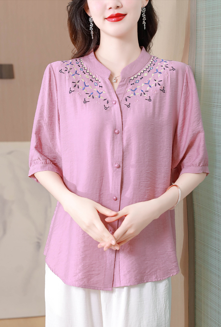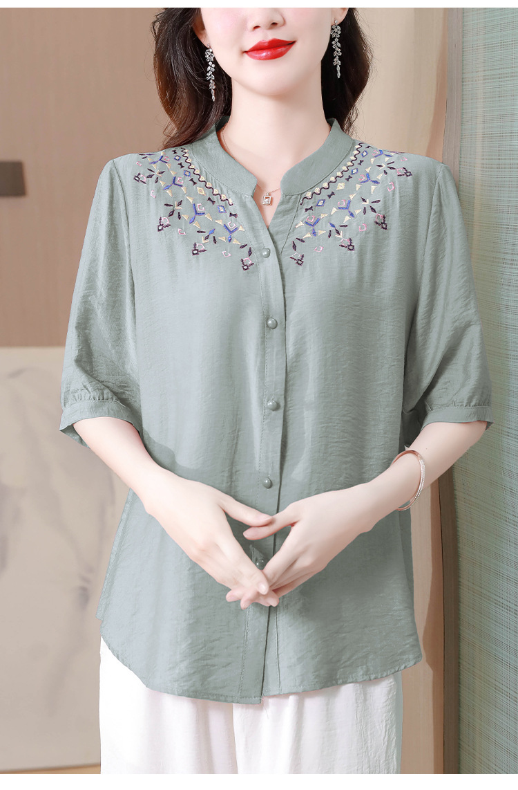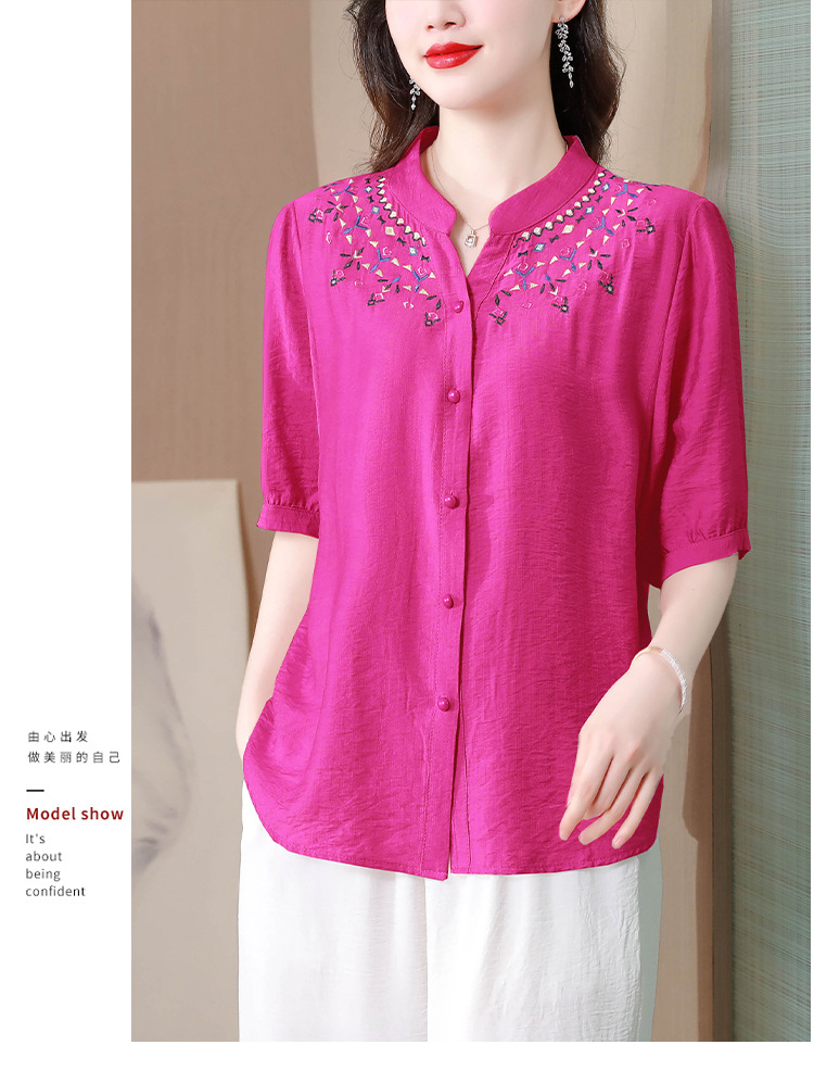 2023 여름 새로운 예술적 복고풍 에스닉 스타일 면과 린넨 자수 셔츠 여성의 느슨한 셔츠 우아한 여성 의류스토어 가기