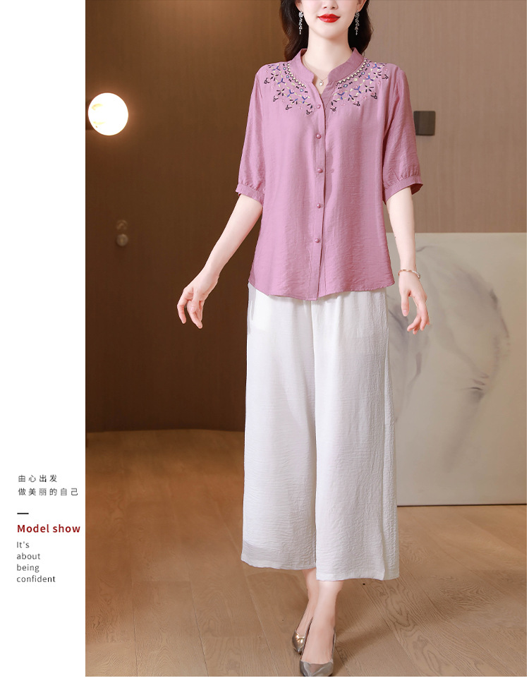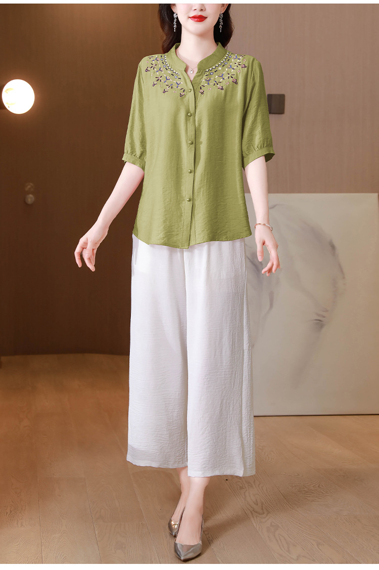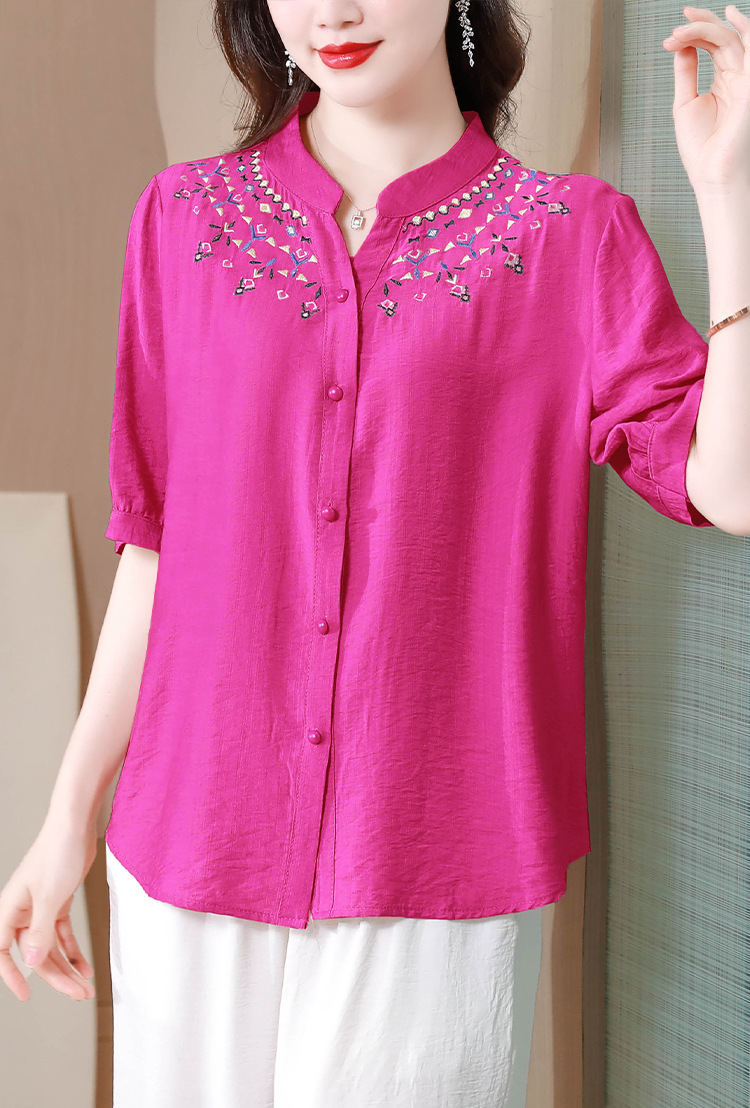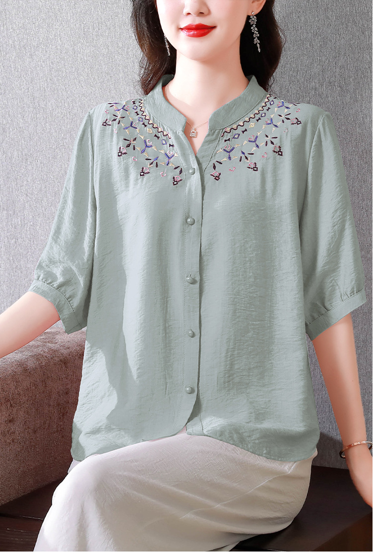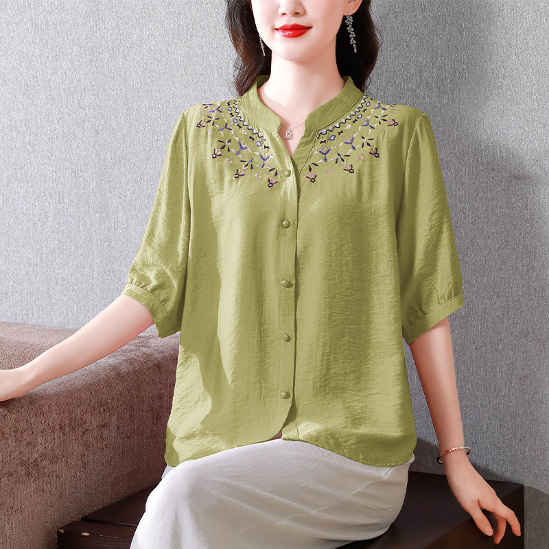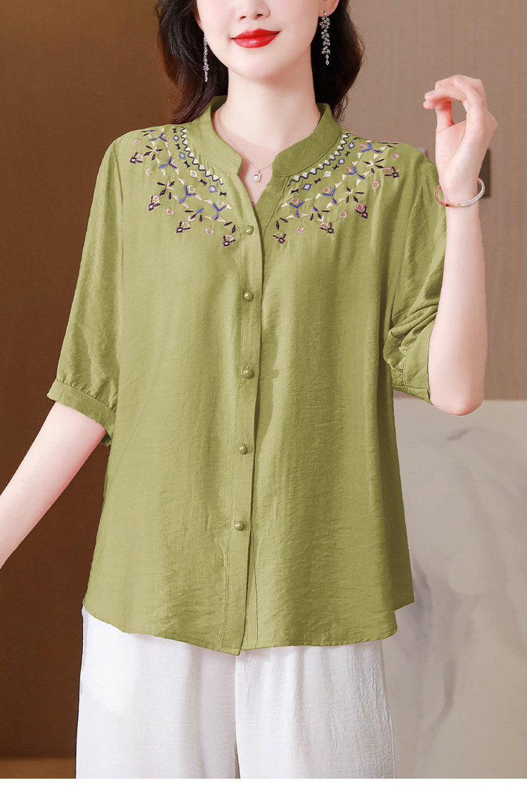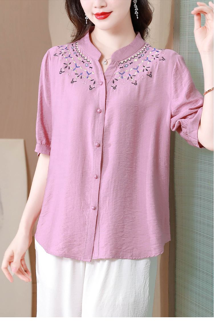 2023 여름 새로운 예술적 복고풍 에스닉 스타일 면과 린넨 자수 셔츠 여성의 느슨한 셔츠 우아한 여성 의류