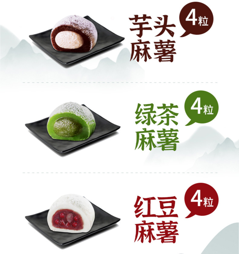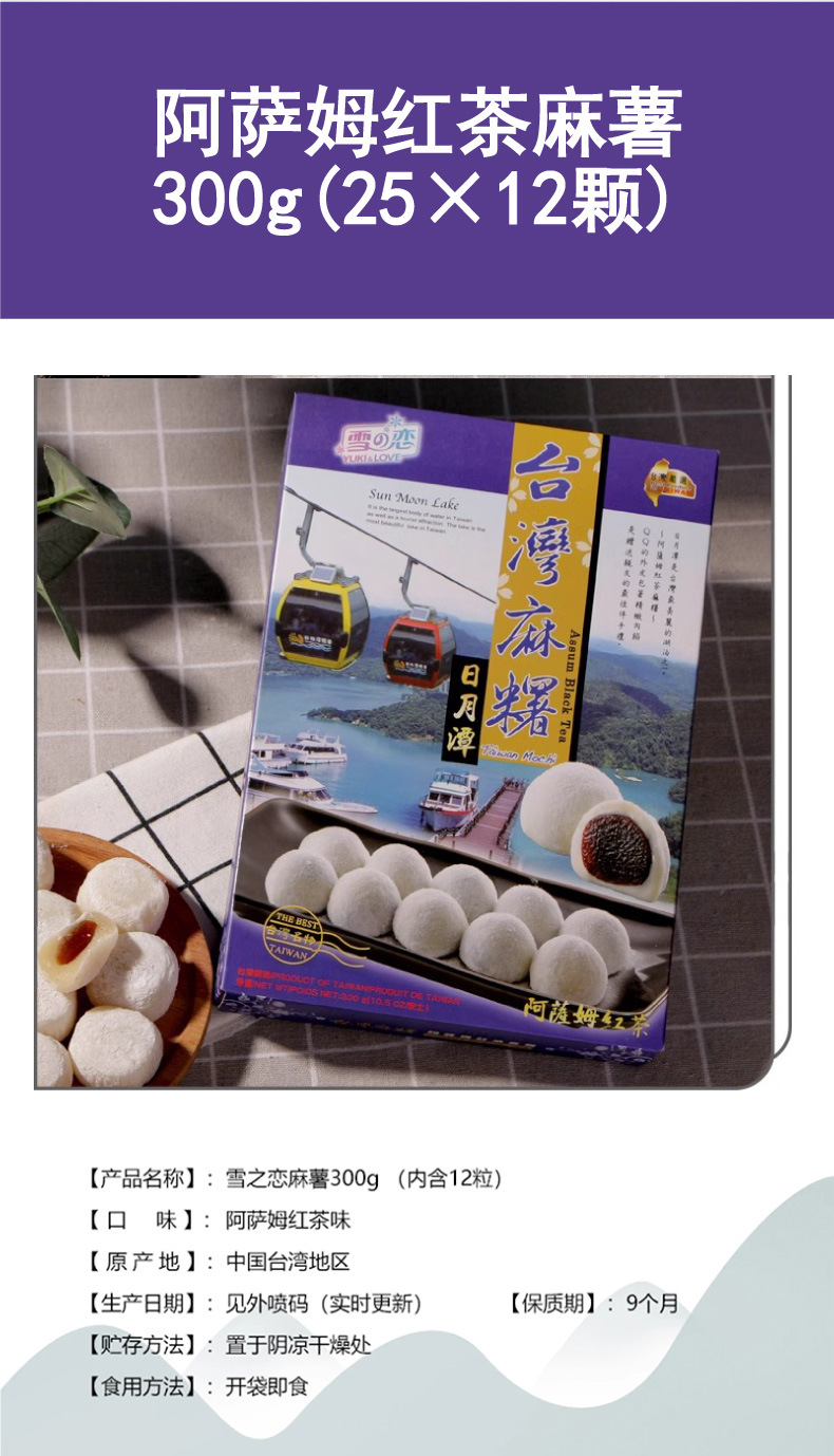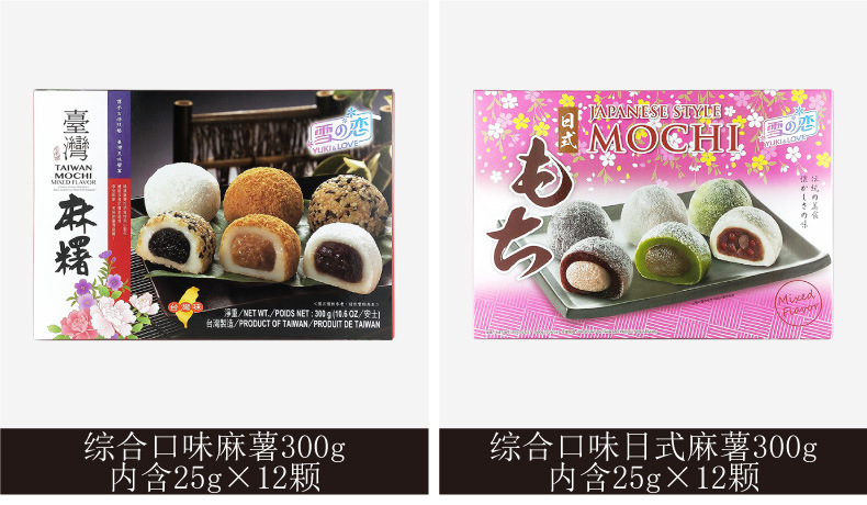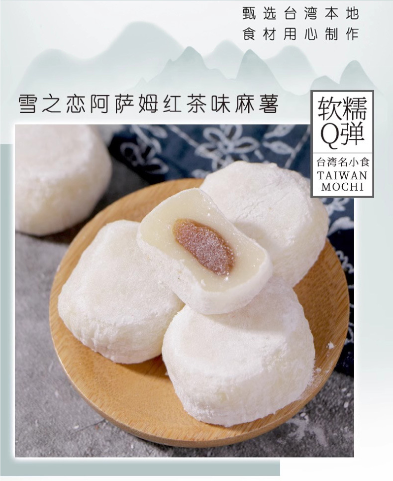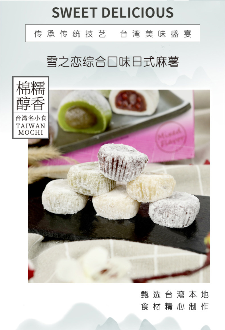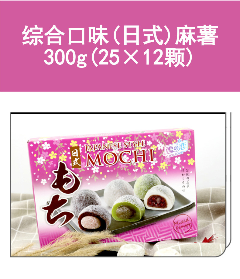 雪之恋综合口味日式麻薯300g(内含红豆、绿茶、芋头三口味)