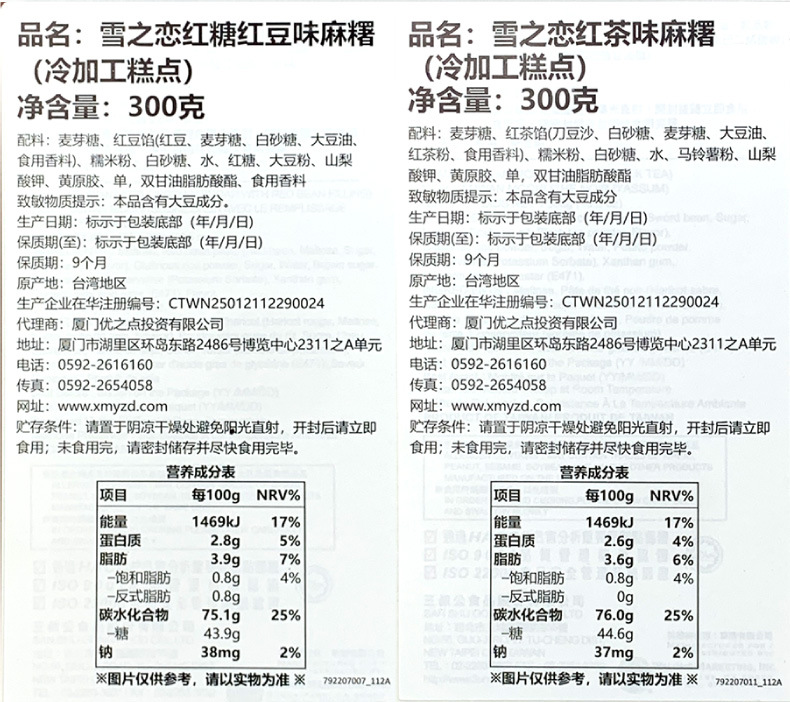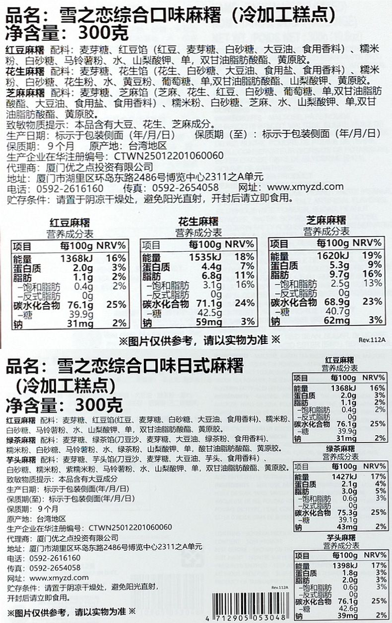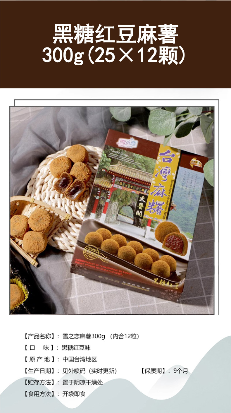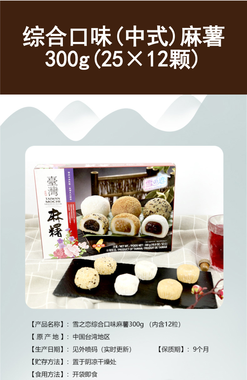 雪之恋综合口味中式麻薯300g(内含红豆、花生、芝麻三口味)