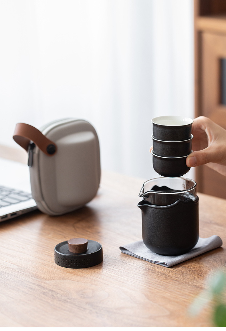 便携式快客杯一壶三杯旅行茶具套装车载户外旅游泡茶随行LOGO