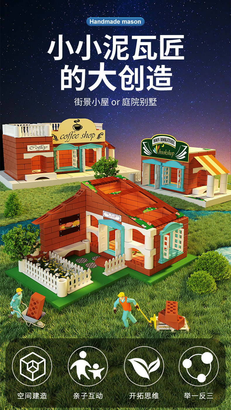 미니 작은 bricklayer diy 아이 건축 집 장난감 집 건축 수제 모형 벽돌 벽 장난감스토어 가기