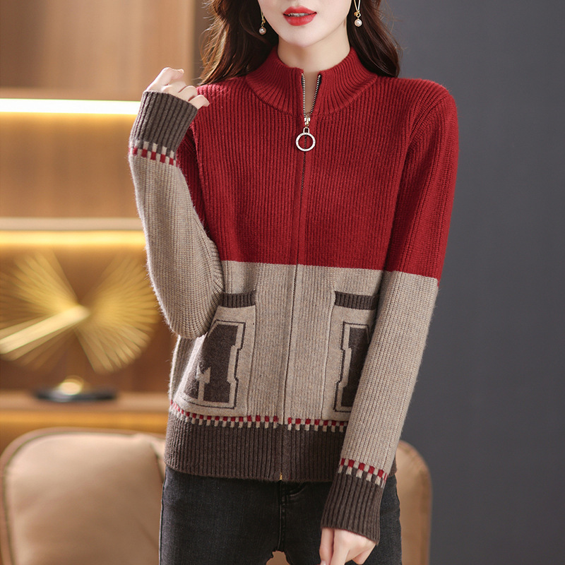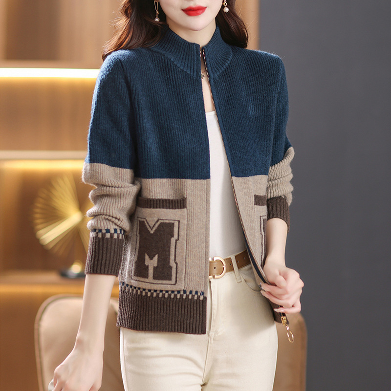 스탠드 칼라 니트 가디건 여성용 2023 봄과 가을 느슨한 한국 스타일 지퍼 스웨터 코트 숄 외부 색상 매칭 탑스토어 가기