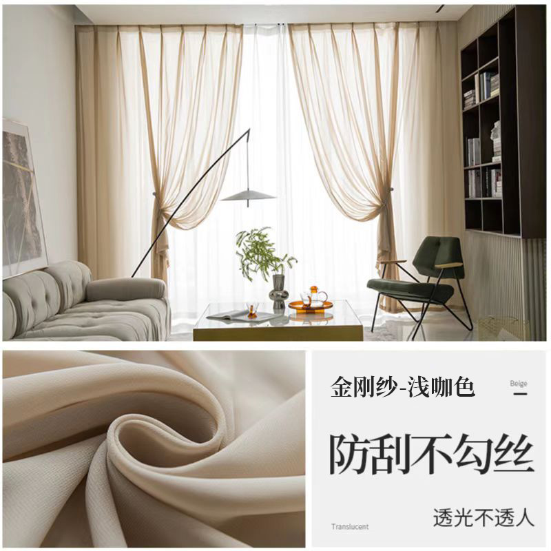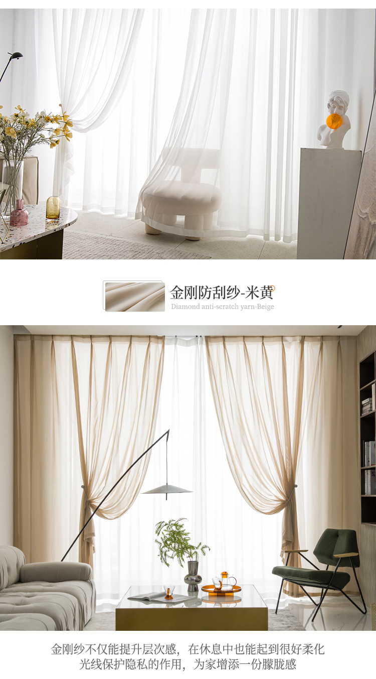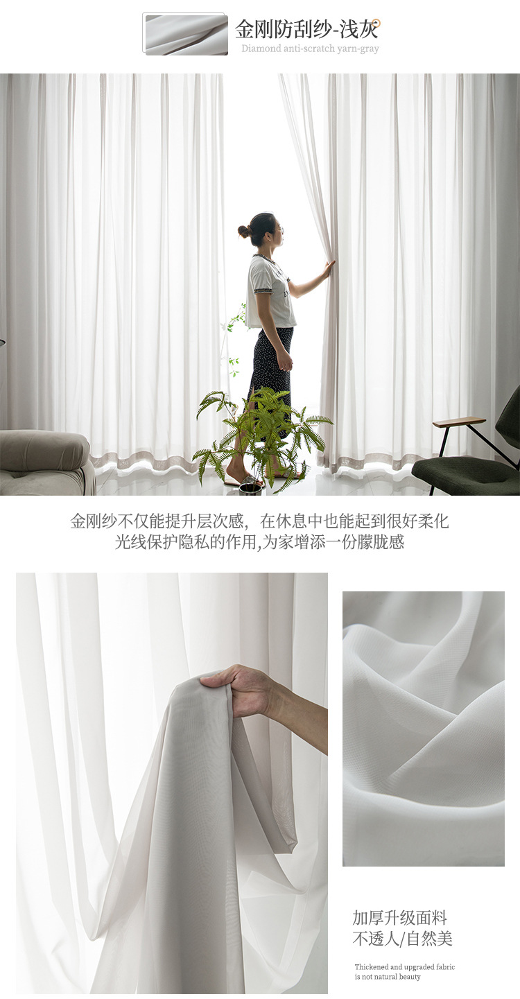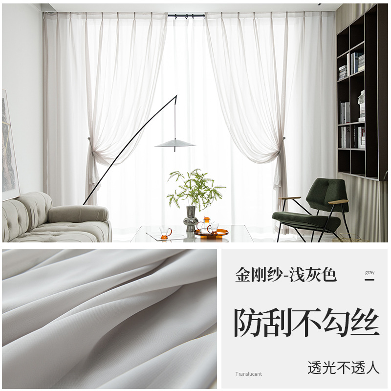 현대 투명 Pervious 다이아몬드 거즈 커튼 스크래치 방지 비 후크 실크 창 스크린 마감 비 천공 벨크로 거실 침실스토어 가기