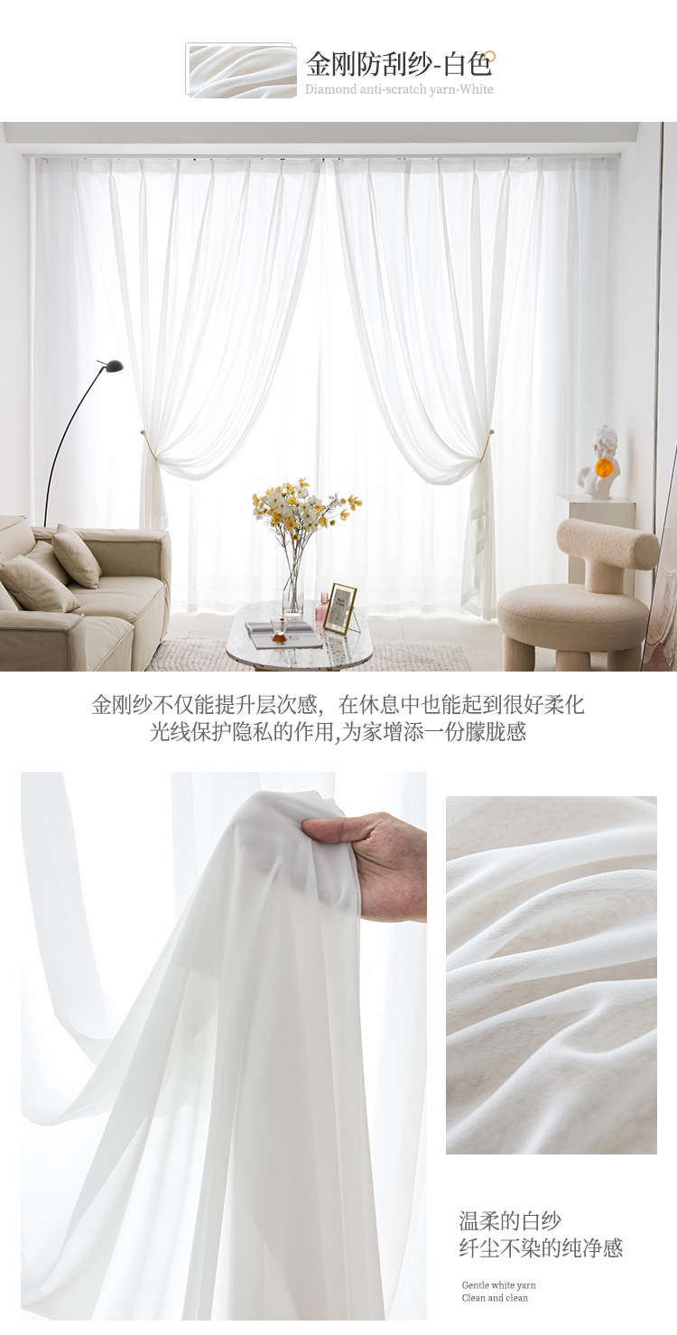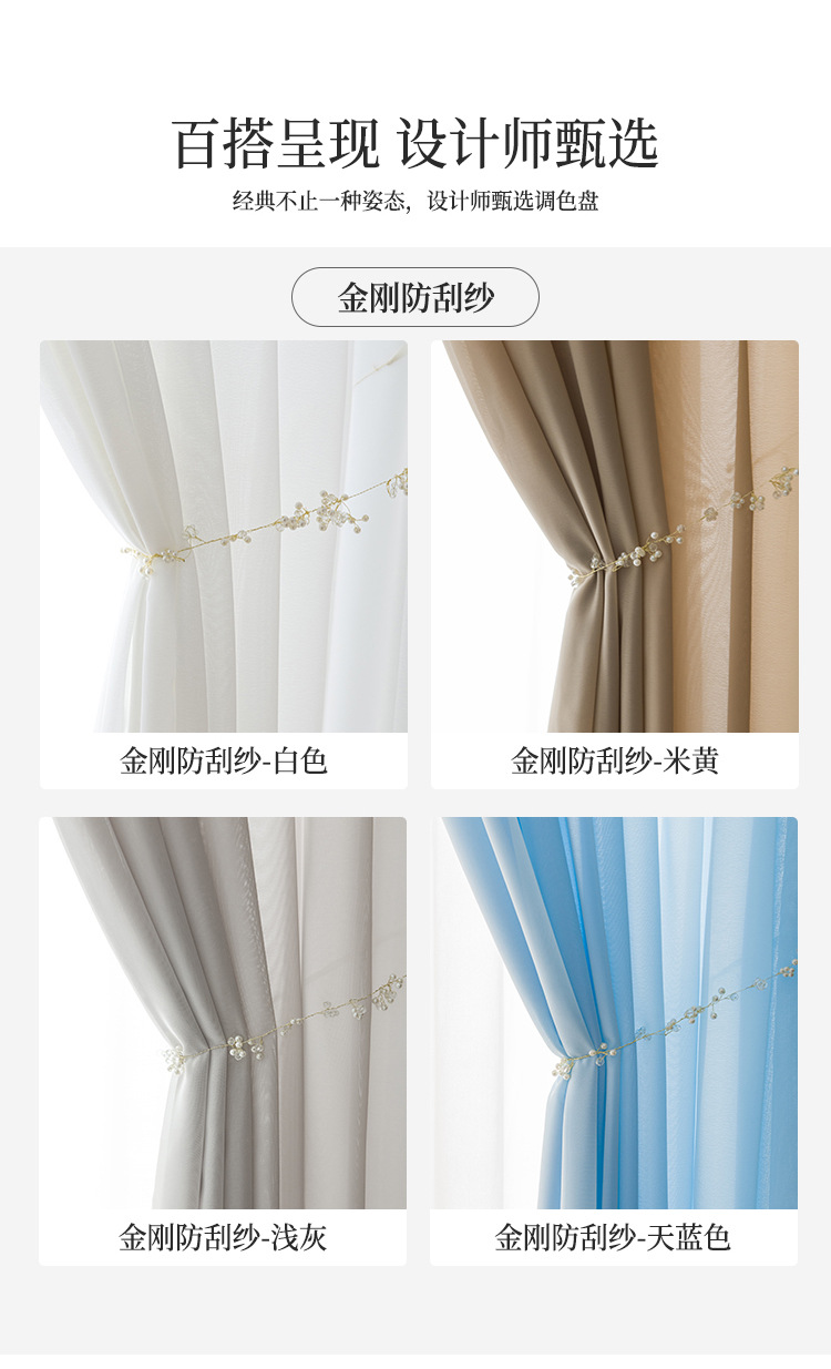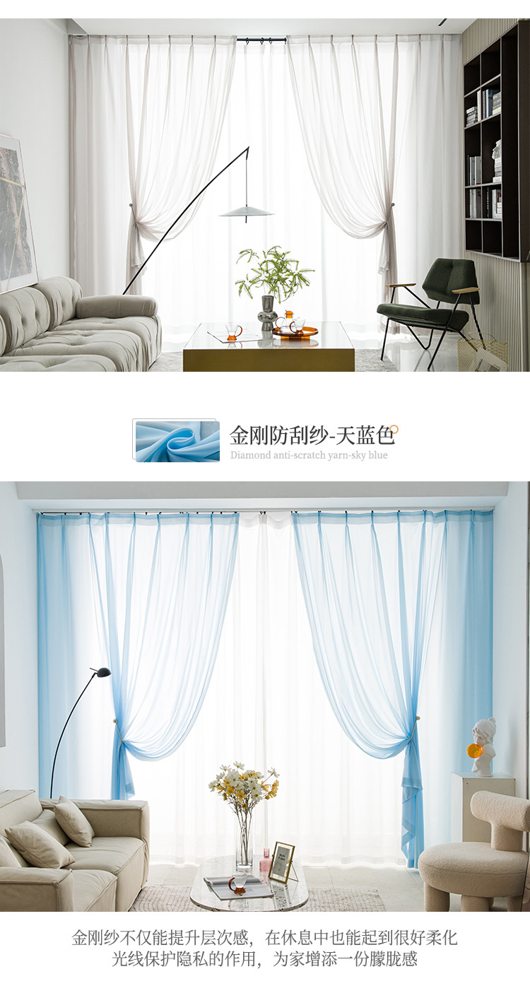 현대 투명 Pervious 다이아몬드 거즈 커튼 스크래치 방지 비 후크 실크 창 스크린 마감 비 천공 벨크로 거실 침실스토어 가기