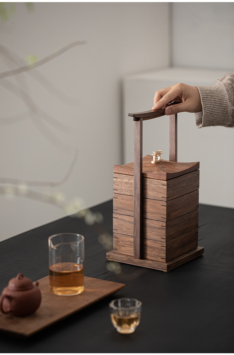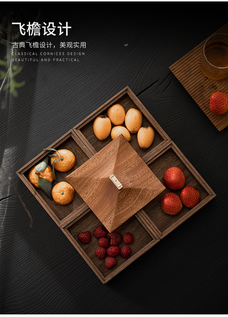북미 블랙 호두 너트 플레이트 야외 과자 보관 상자 휴대용 식품 상자 차 상자 빛 고급 휴대용 상자 차 상자스토어 가기