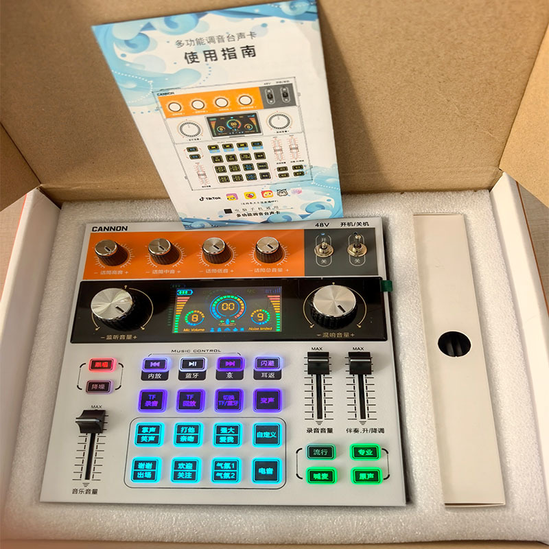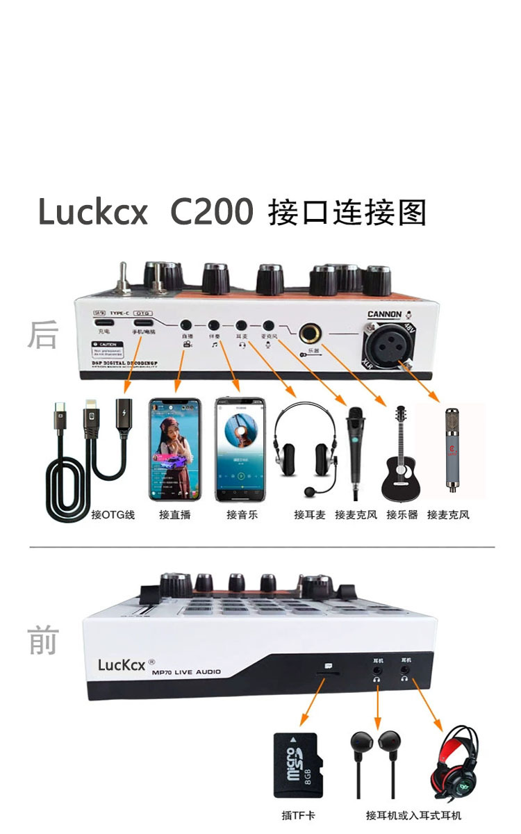 • 창샹 C200 사운드 카드 + F11 대형 진동 마이크 + 안드로이드/애플 라이브 방송 케이블 + 라이브 방송 헤드폰 + 마이크 스탠드 + 데스크탑 조명 스탠드