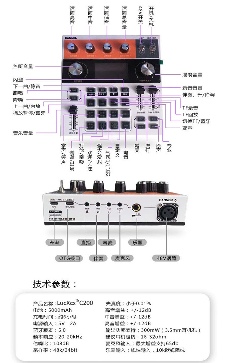 • 창샹 C200 싱글 사운드 카드 + 충전 케이블 + 안드로이드 라이브 방송 케이블 + 반주 케이블