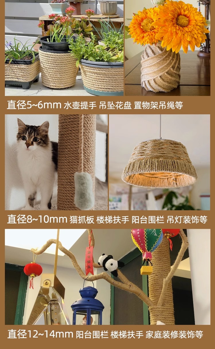 대마 로프 바인딩 로프 두께 수동 DIY 짠 꼬기 고양이 캐치 로프 그리드 사진 벽 장식 재료스토어 가기