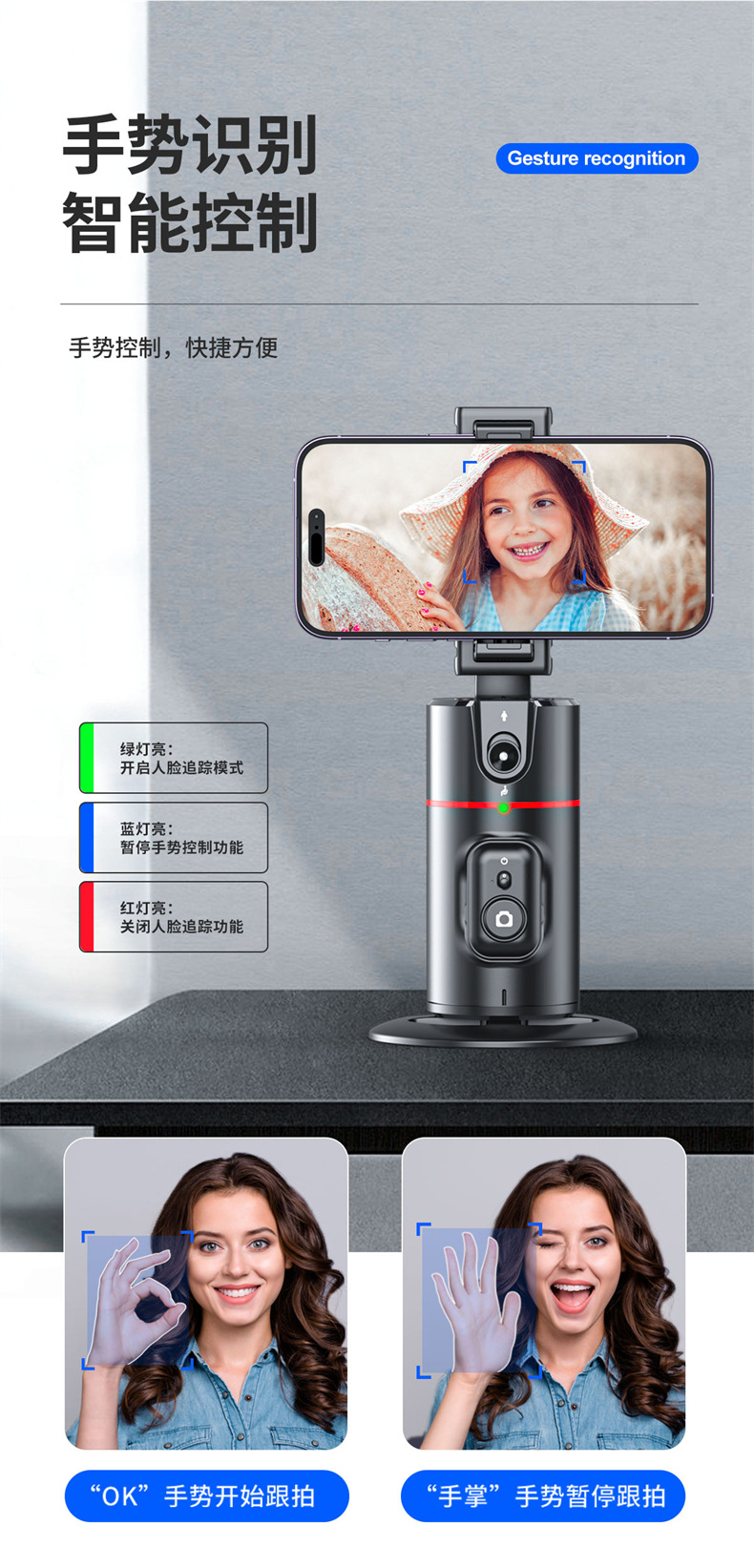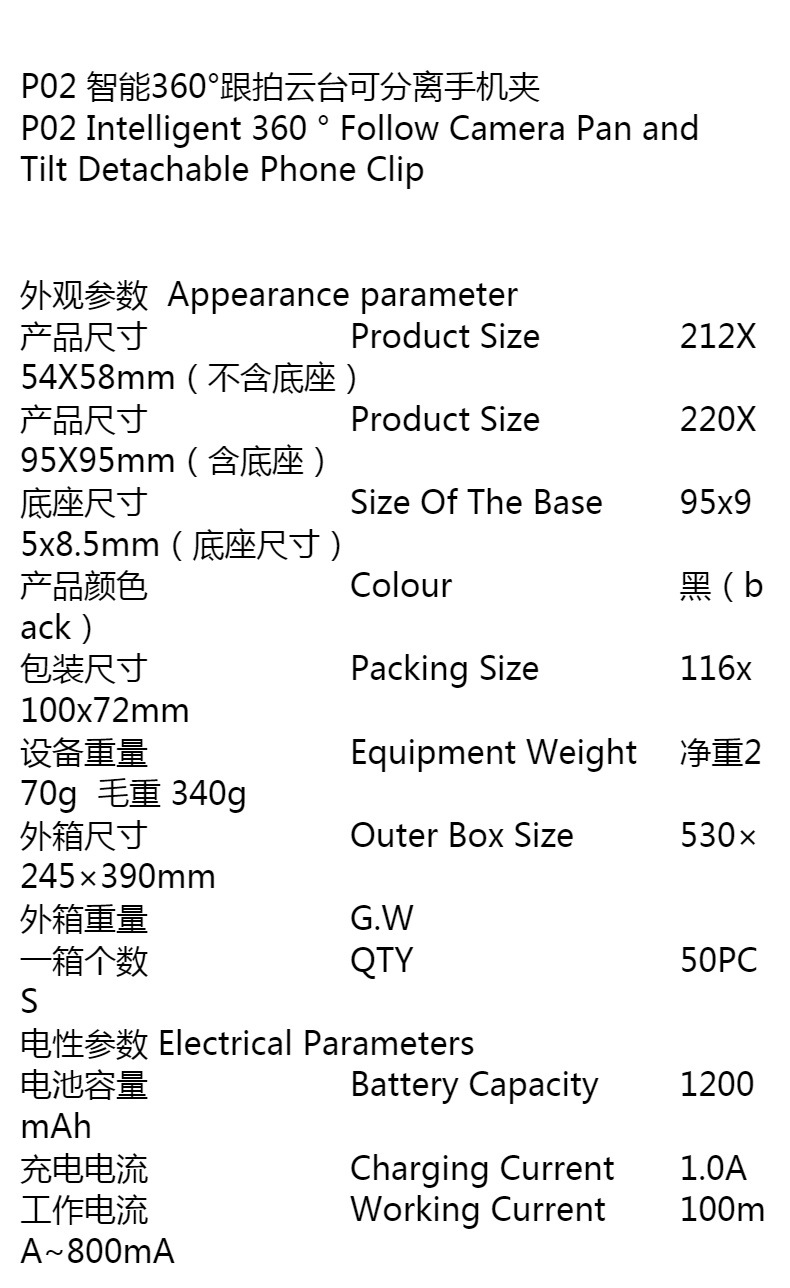 P02 데스크탑 360 회전 지능형 얼굴 인식 휴대 전화 라이브 비디오 촬영 및 사진 브래킷 파노라마 PTZ