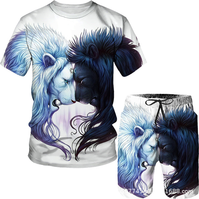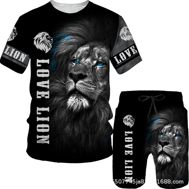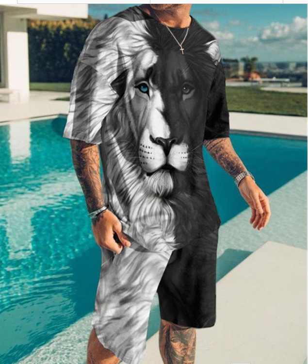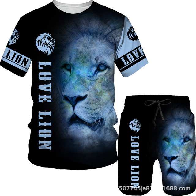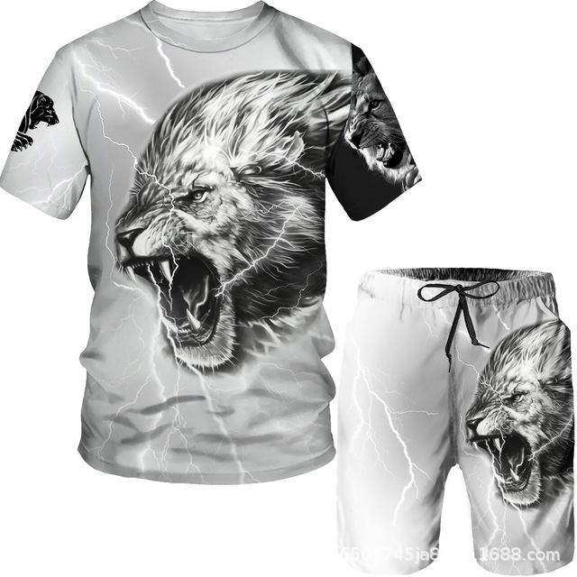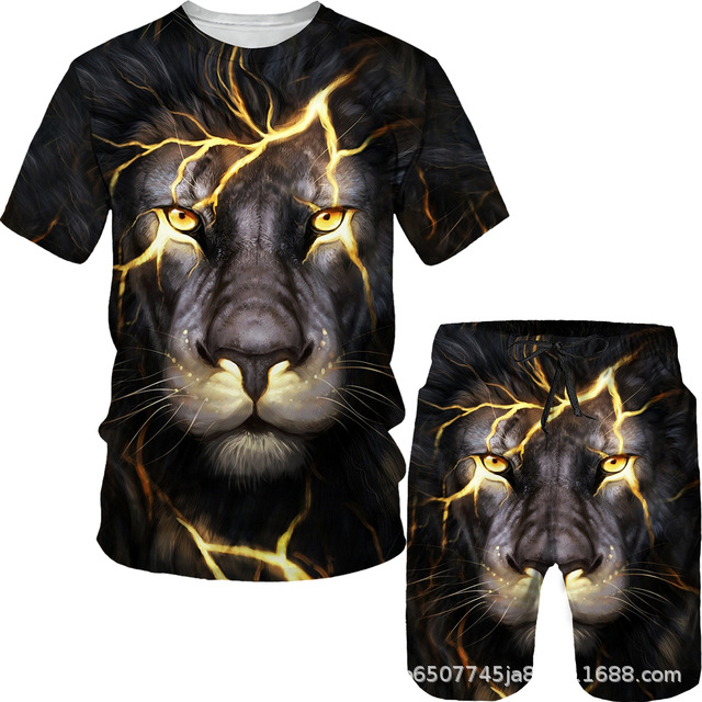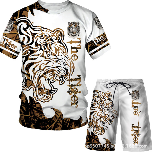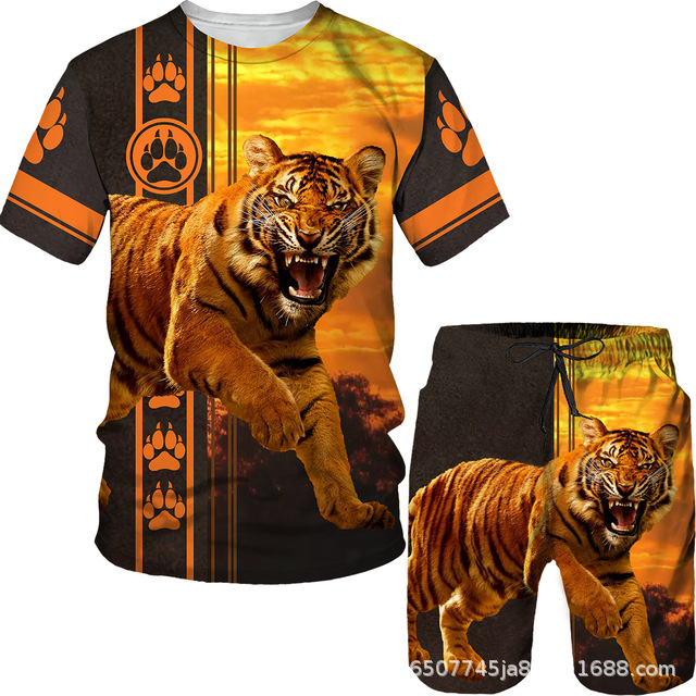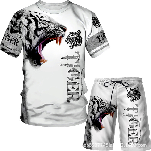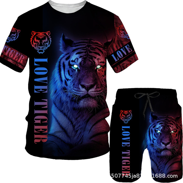 라이거 시리즈 3D 프린팅 남성 레저 세트 2023 여름 크로스 국경 새 성인 세트 재고 도매스토어 가기