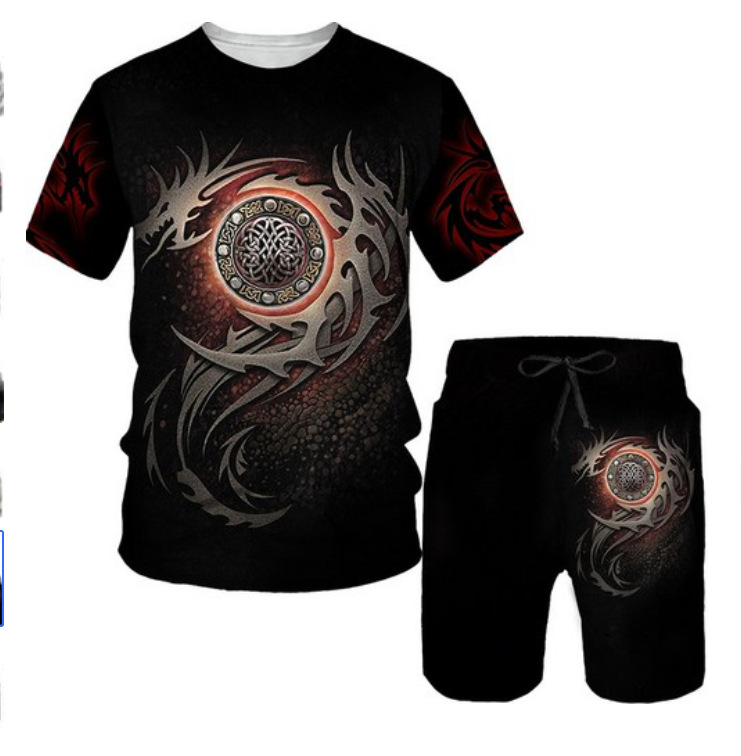 라이거 시리즈 3D 프린팅 남성 레저 세트 2023 여름 크로스 국경 새 성인 세트 재고 도매