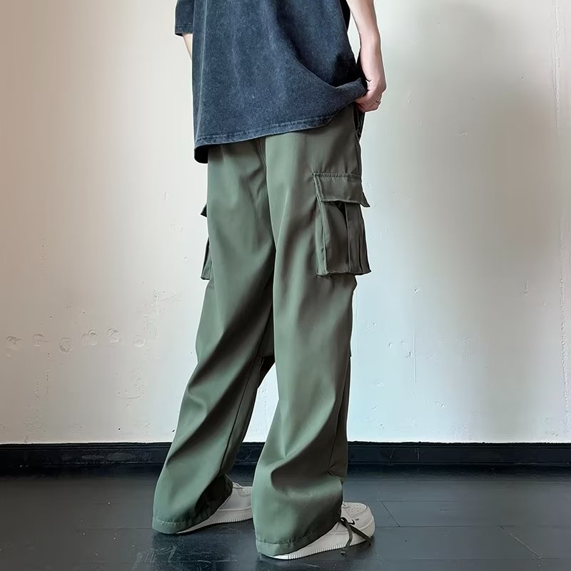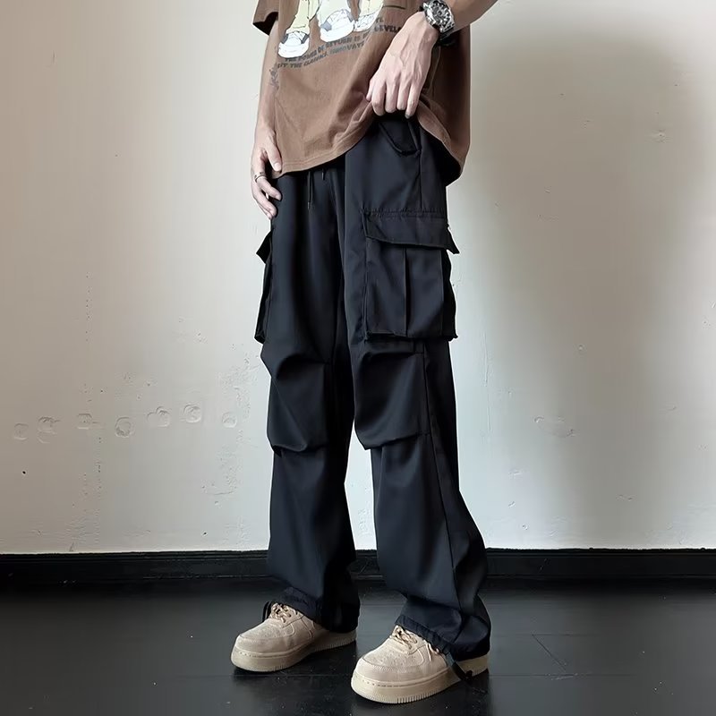 블랙 카고 팬츠 남성용 얇은 트렌디 브랜드 와이드 레그 캐주얼 팬츠 여름 남성용 스트레이트 레그 루즈한 팬츠스토어 가기