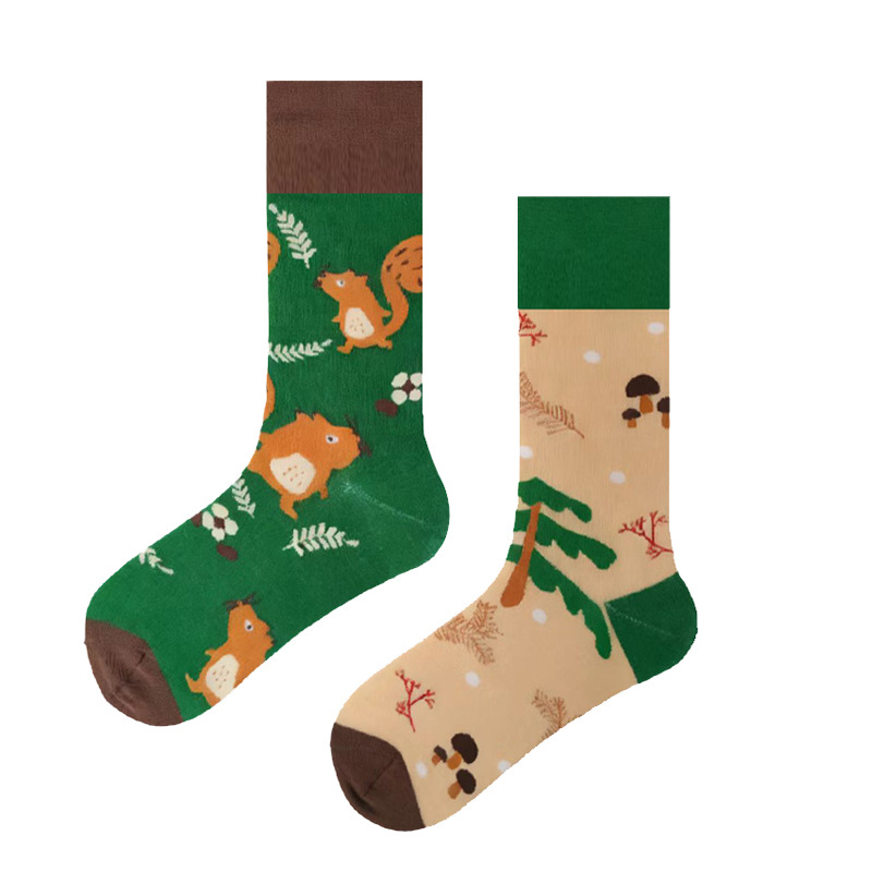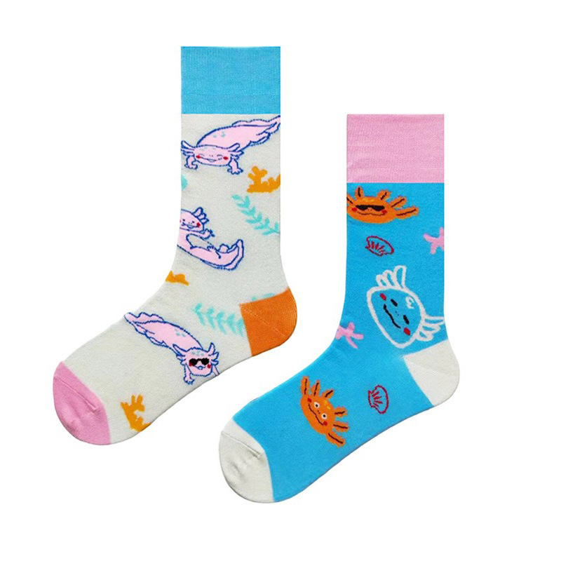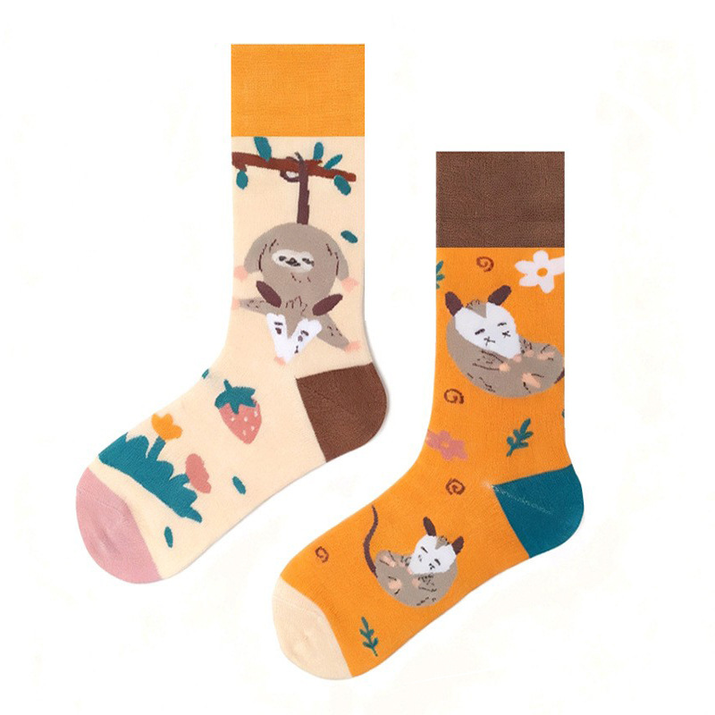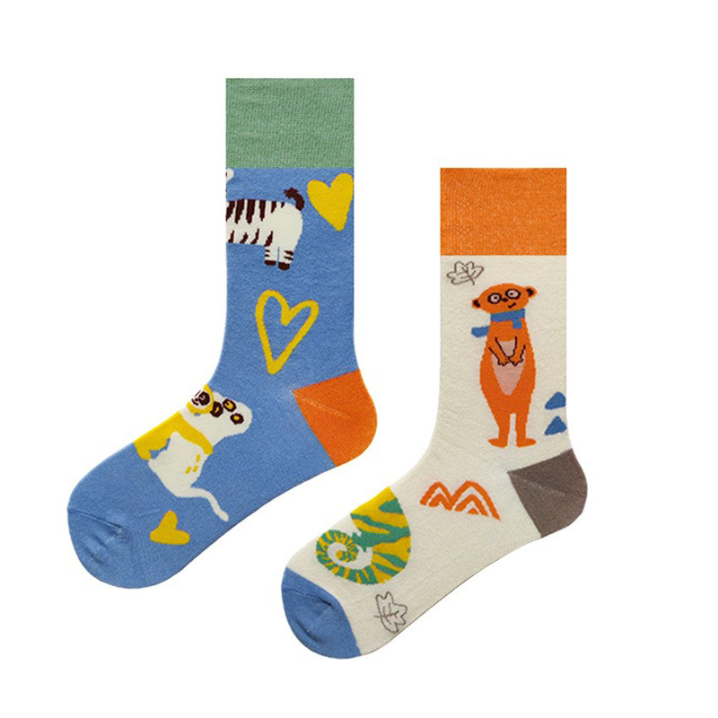 크로스 보더 뉴 인 애니멀 펀 자카드 남성과 여성을위한 유행 양말 AB 만다린 오리 양말 커플 중간 길이 양말 스트리트 면 양말스토어 가기