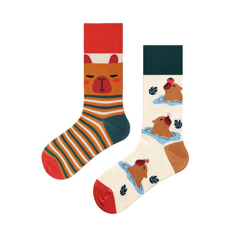 크로스 보더 뉴 인 애니멀 펀 자카드 남성과 여성을위한 유행 양말 AB 만다린 오리 양말 커플 중간 길이 양말 스트리트 면 양말