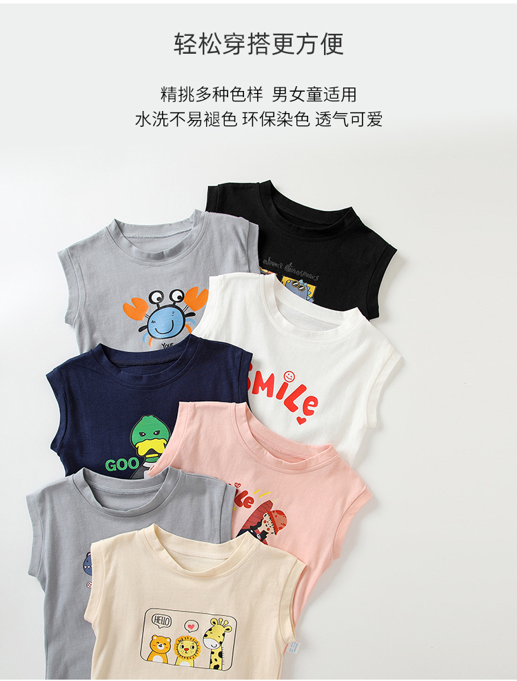 아기의 조끼 아기의 여름 얇은 순면 어린이 민소매 조끼 이너 웨어 여아 민소매 여름 밑바닥