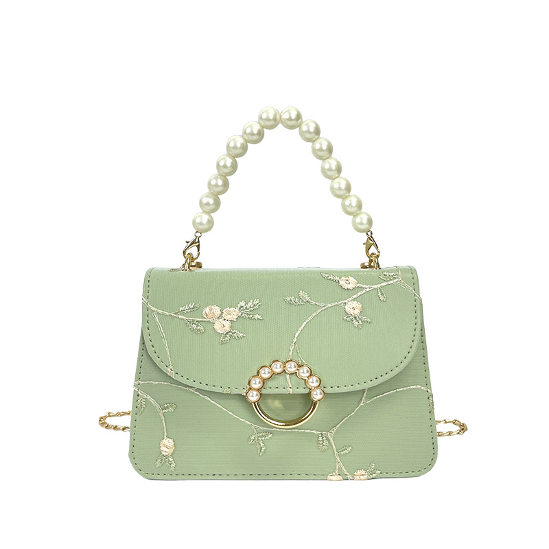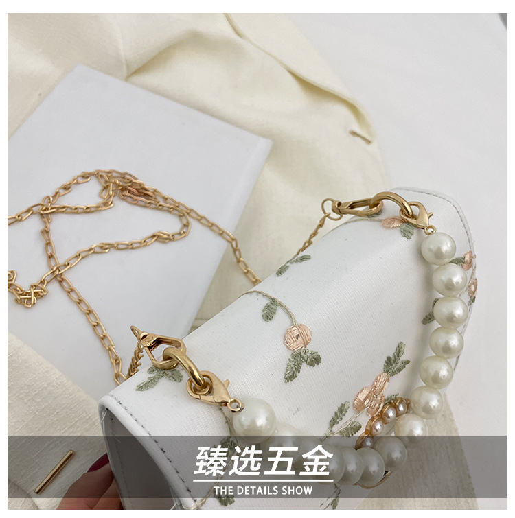 새로운 여성 가방 2023 봄과 여름 새로운 패션 세련된 레이스 숄더백 크로스 바디 백 작은 사각 가방 진주 휴대용 가방스토어 가기