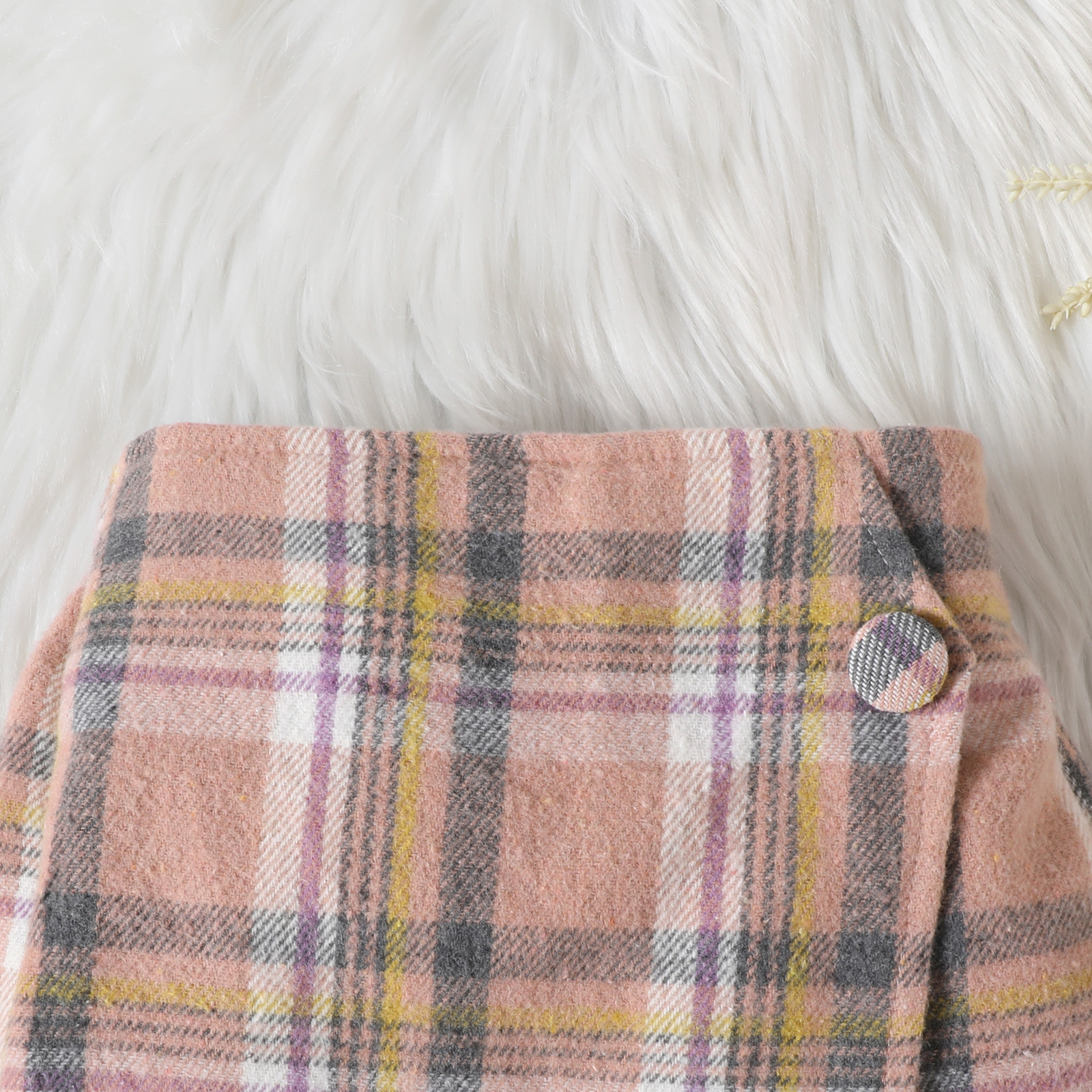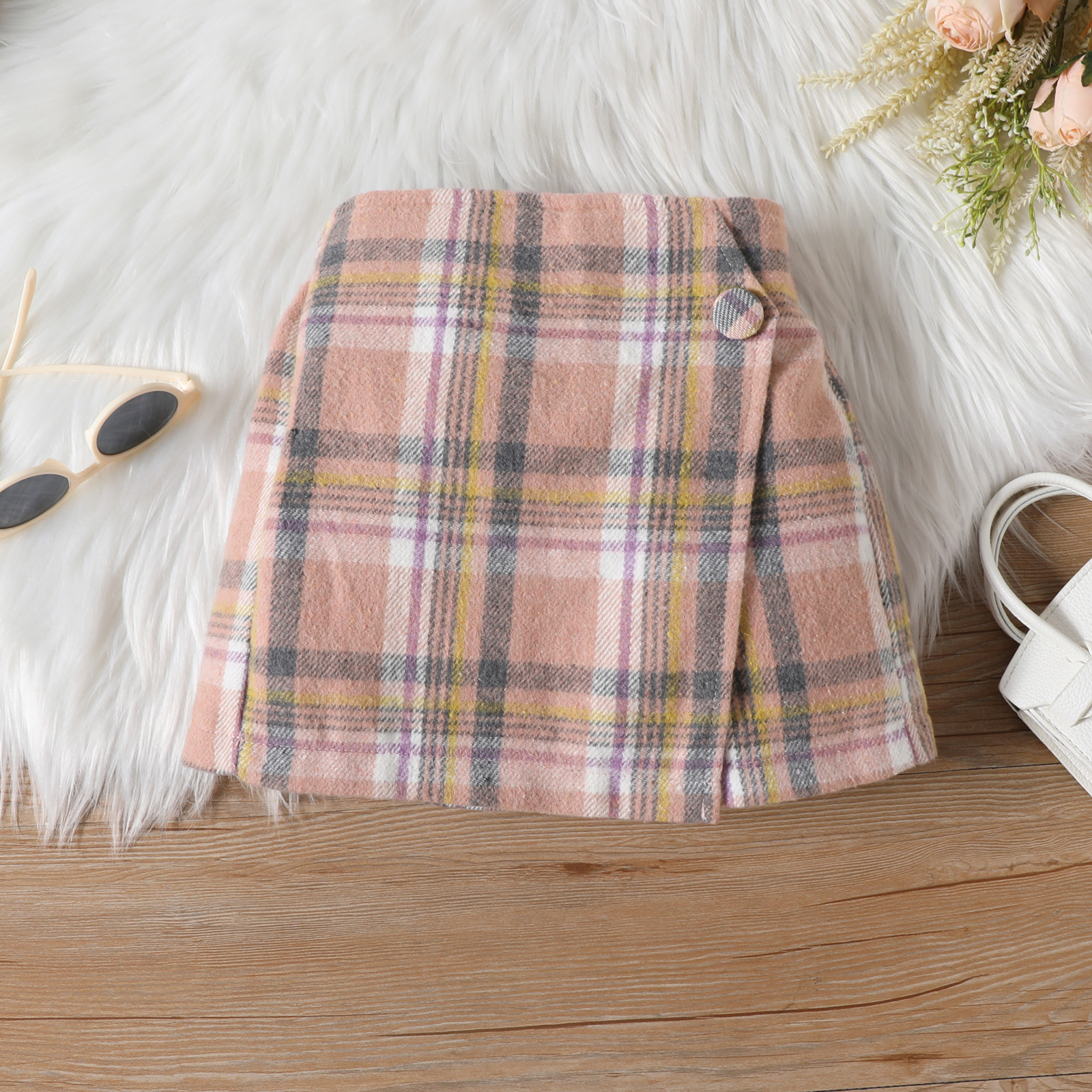 2023 유럽과 미국 봄과 가을 소녀 구덩이 비행 소매 긴 소매 탑 불규칙한 격자 무늬 짧은 스커트 투피스 세트스토어 가기