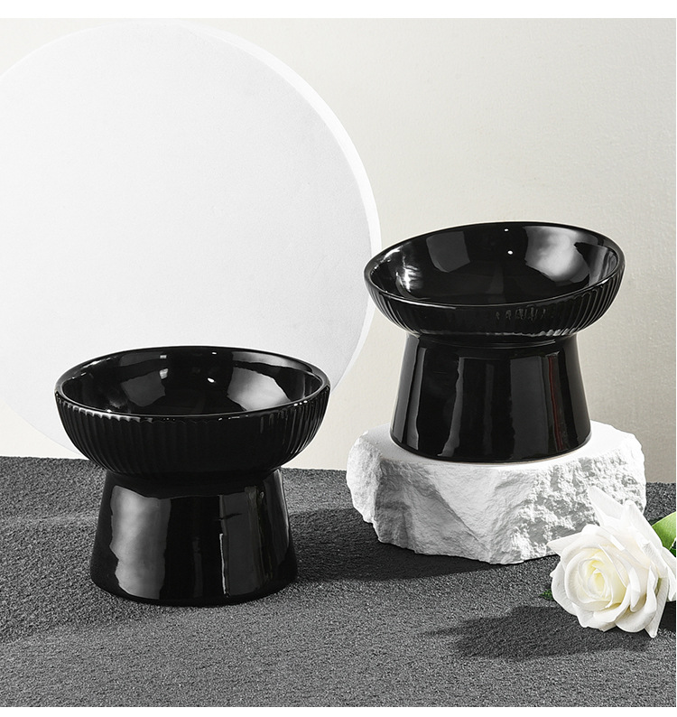 고양이 그릇 세라믹 그릇 전복 방지 고양이 분지 보호 경추 고양이 음식 그릇 애완 동물 검정 마시는 그릇 개 그릇 높은 발 밥 그릇스토어 가기