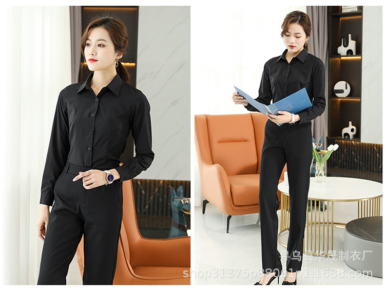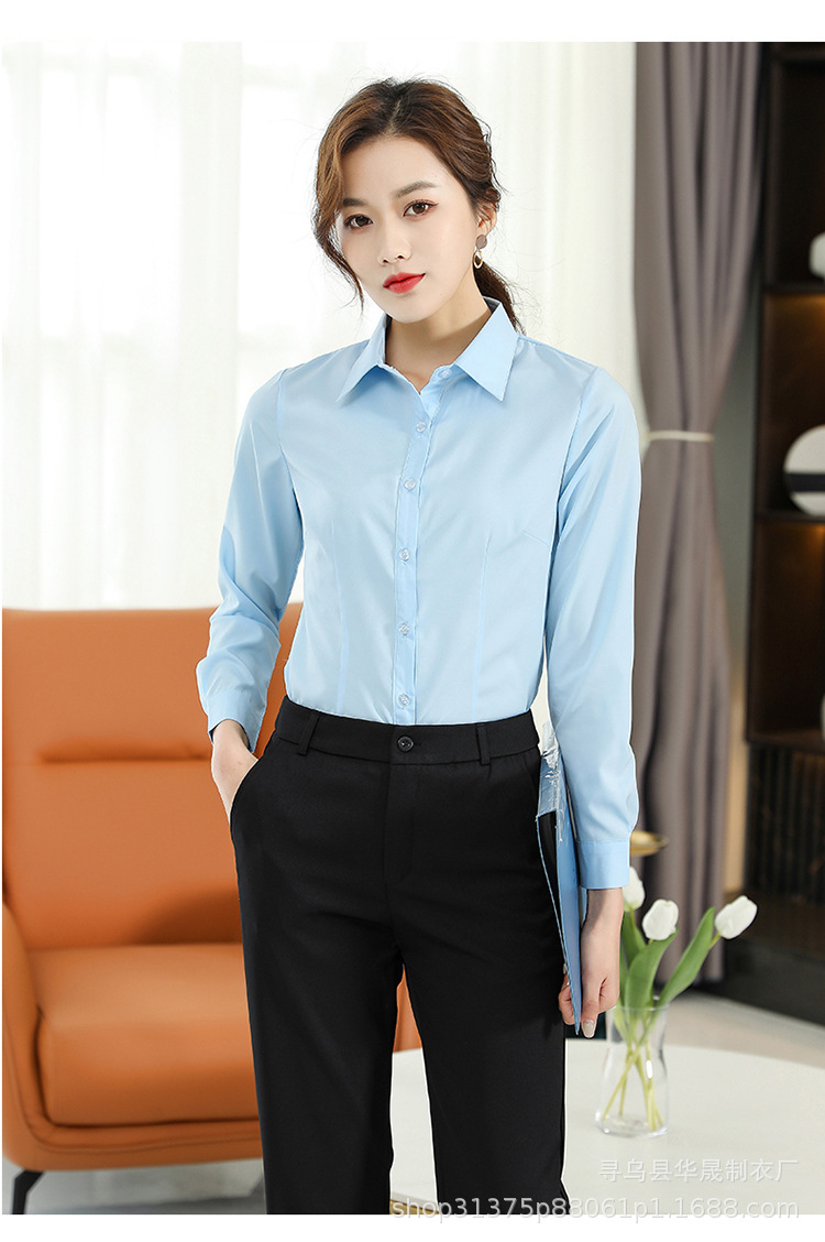 여성용 흰색 셔츠 긴팔 셔츠 회사 봄과 여름 비즈니스 착용 반팔 작업복 작업 파란색 통근 유니폼