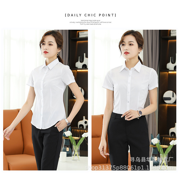 여성용 흰색 셔츠 긴팔 셔츠 회사 봄과 여름 비즈니스 착용 반팔 작업복 작업 파란색 통근 유니폼스토어 가기