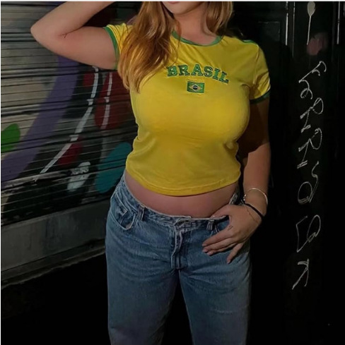 유럽과 미국의 봄 새로운 2024 여성 반팔 둥근 목 캐주얼 편지 자수 심플 스타일 티셔츠스토어 가기