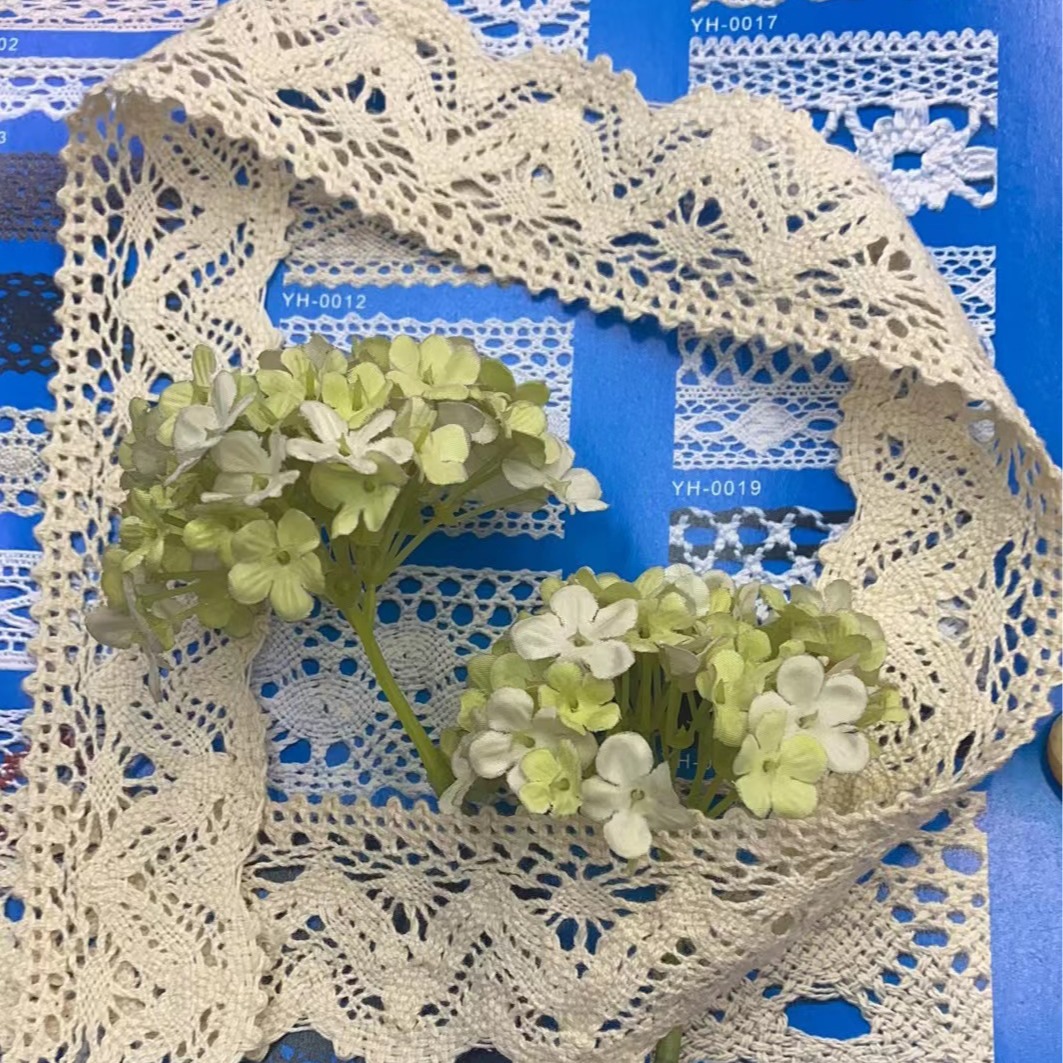 4cm 일방적 인 웨이브 중공 레이스 코튼 레이스 액세서리 공장 직접 재고 공급 수제 DIY 리본스토어 가기