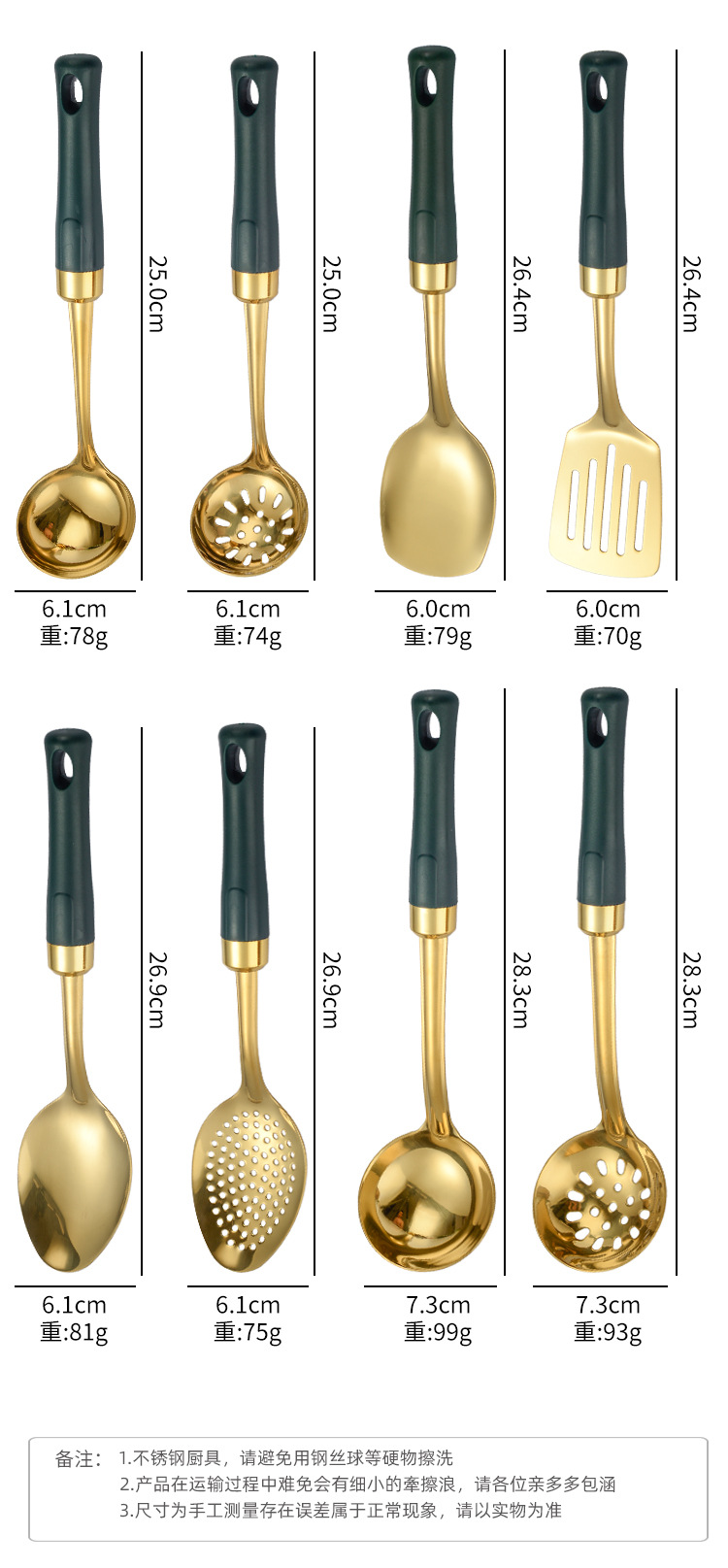 공장 직공급 조리기구 스테인레스 볶음 삽 주방 접시 스푼 냄비 큰 소쿠리 주방 용품 세트