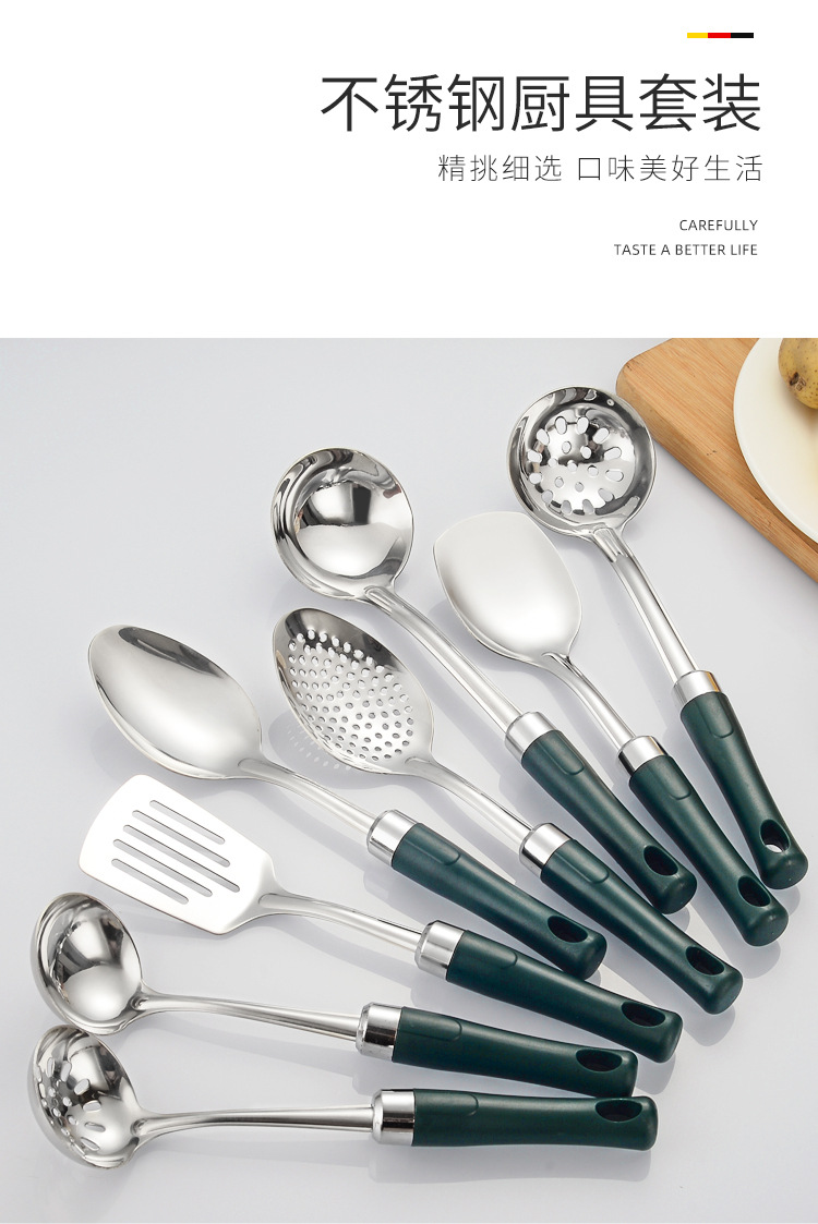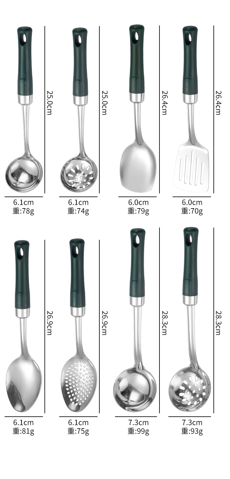 공장 직공급 조리기구 스테인레스 볶음 삽 주방 접시 스푼 냄비 큰 소쿠리 주방 용품 세트스토어 가기
