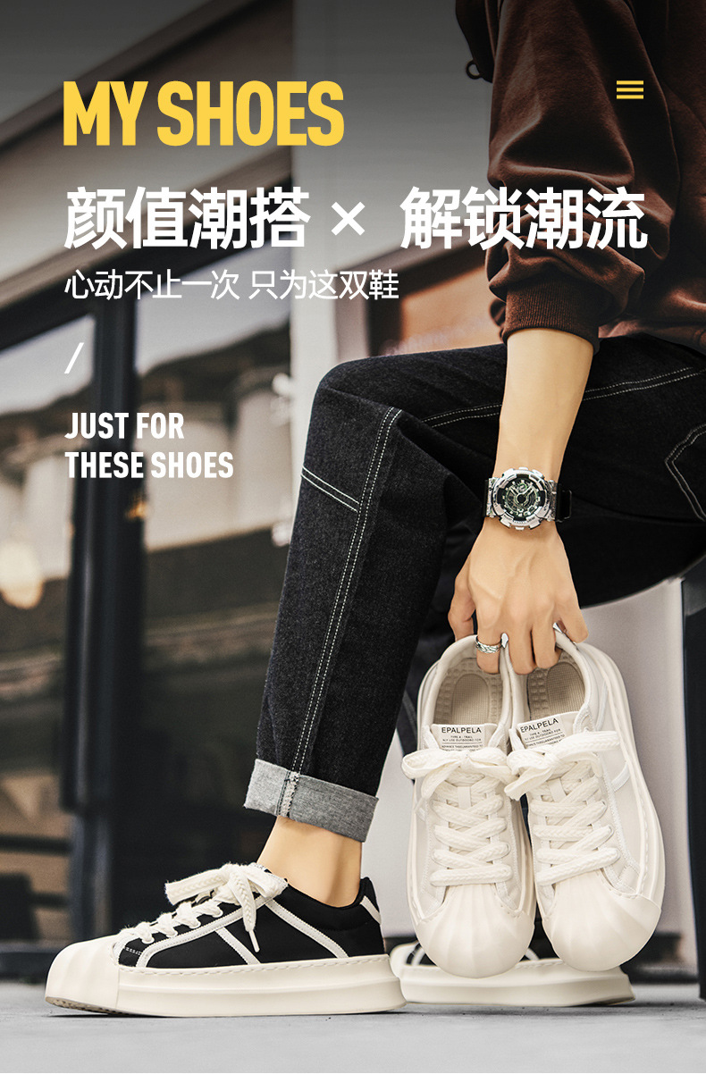 캔버스 신발 여름 통기성 스포츠 플랫 스니커즈 한국식 쉘 헤드 두꺼운 밑창 냉기 접착 캐주얼 만능 트렌디 신발 남성 신발스토어 가기