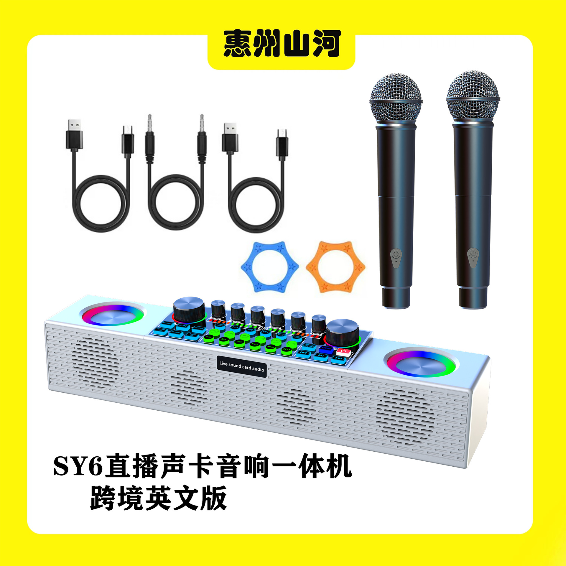 SY6 라이브 방송 사운드 카드 오디오 올인원 홈 KTV 무선 마이크 노래방 아티팩트 마이크 휴대용 오디오