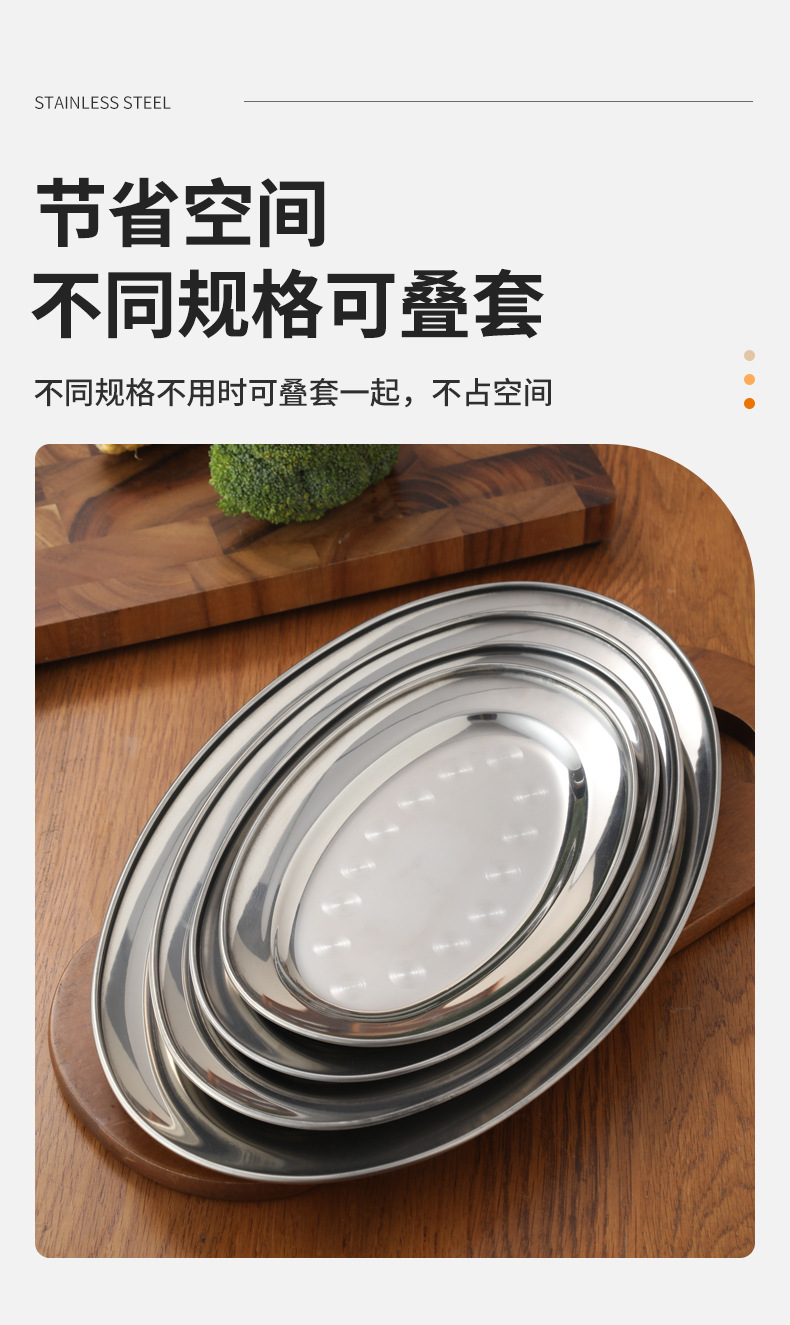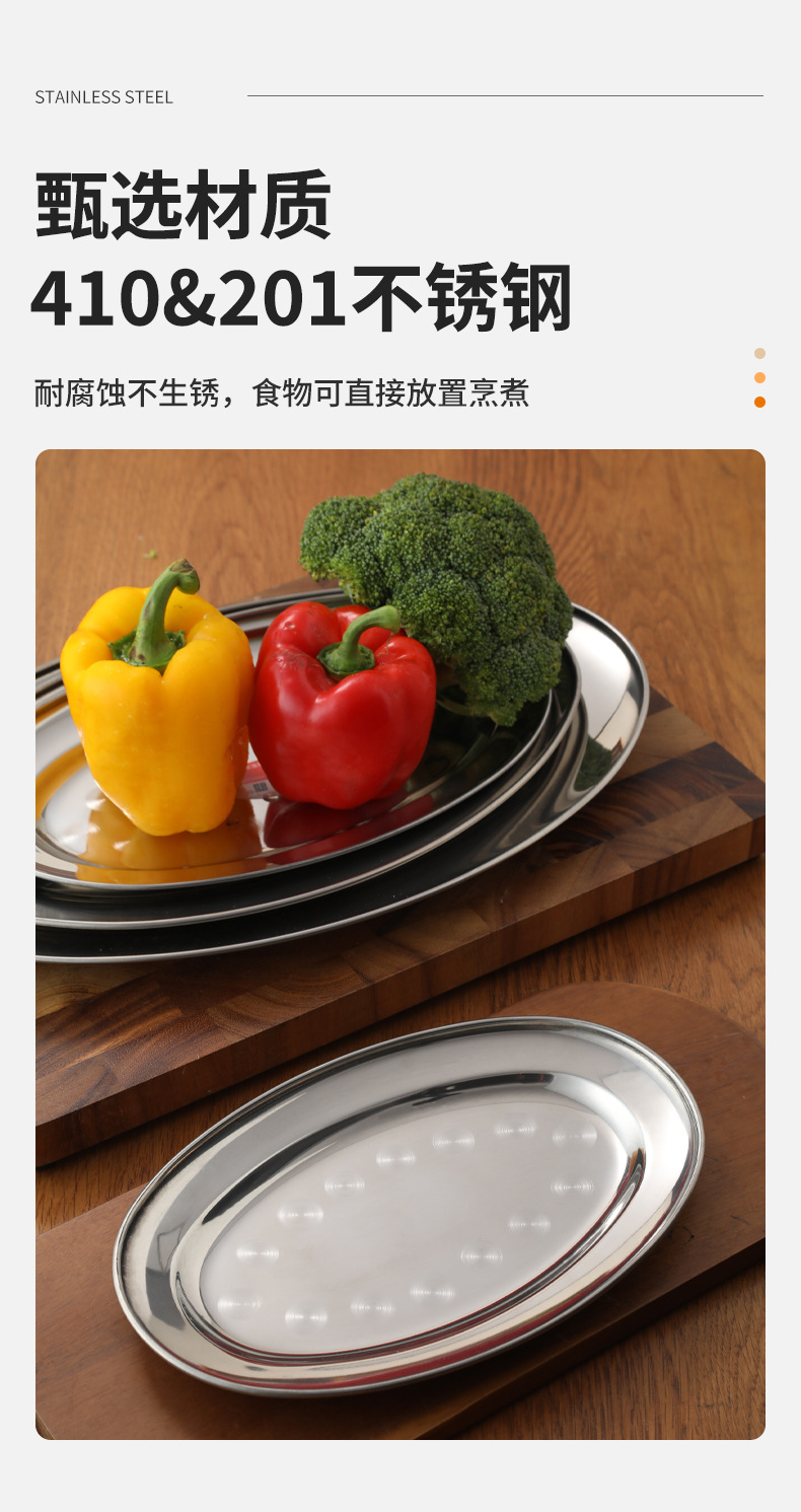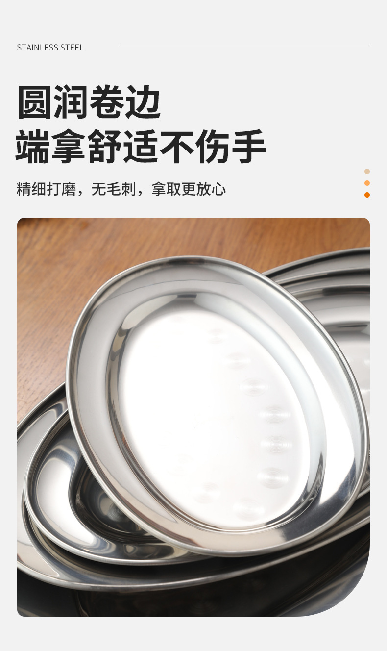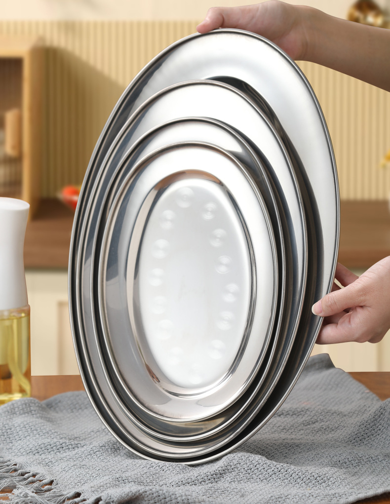 가정용 스테인레스 스틸 계란 접시 접시 생선 접시 한국식 바베큐 타원형 평면 바닥 트레이 두꺼운 과일 플래터 도매스토어 가기
