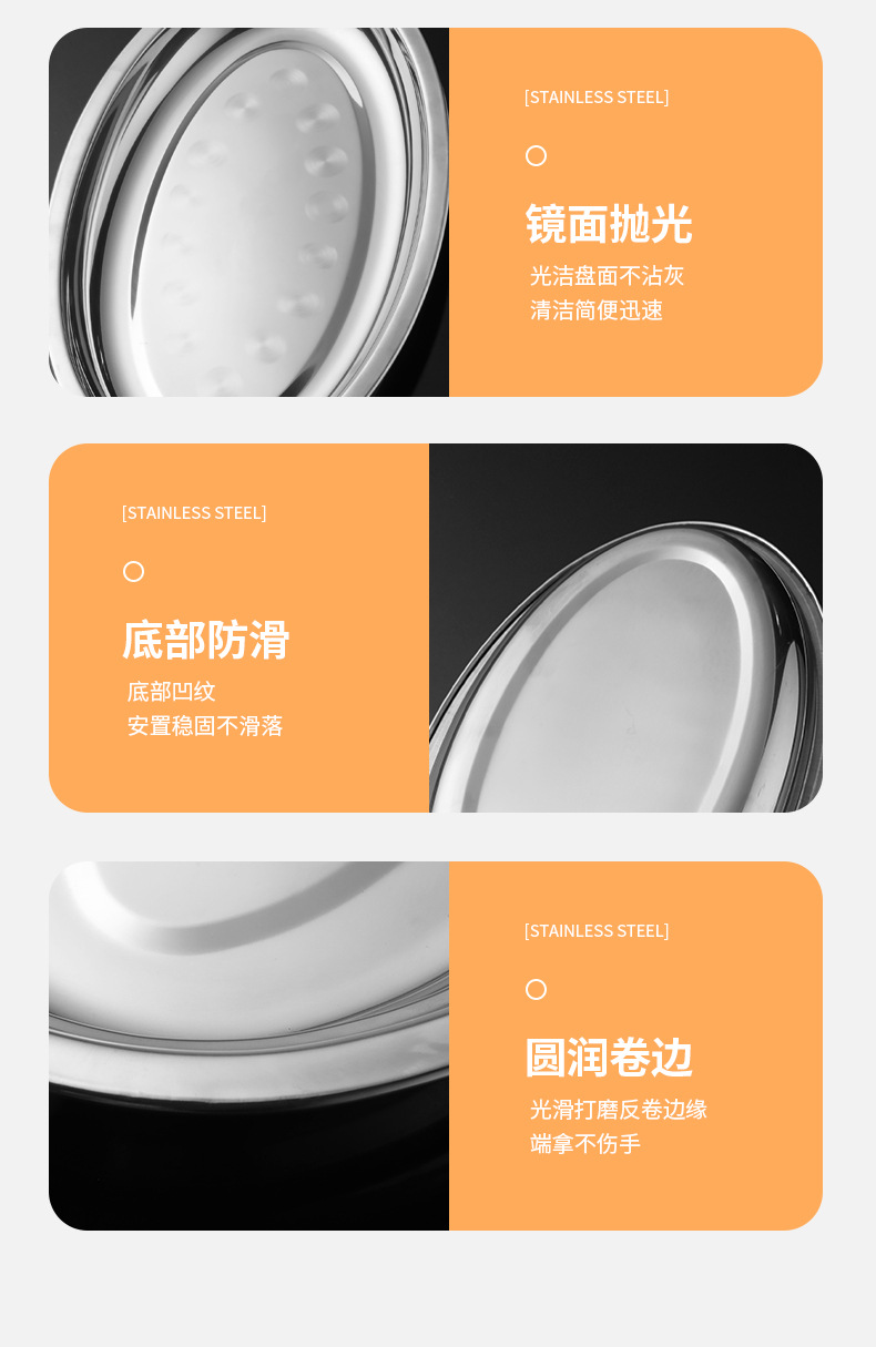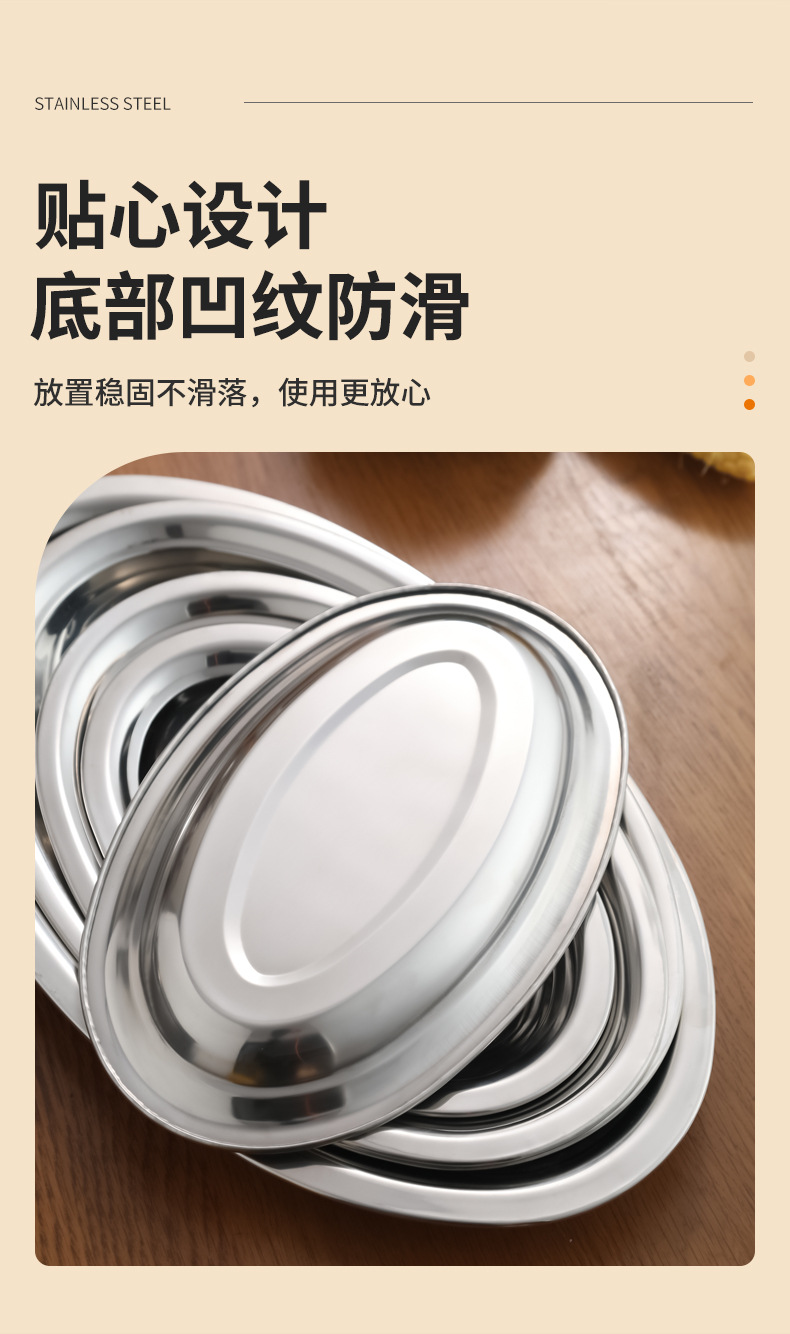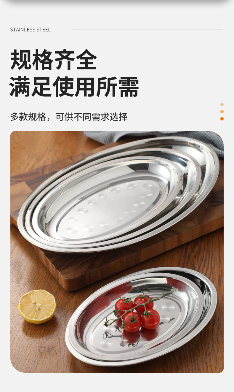 가정용 스테인레스 스틸 계란 접시 접시 생선 접시 한국식 바베큐 타원형 평면 바닥 트레이 두꺼운 과일 플래터 도매스토어 가기