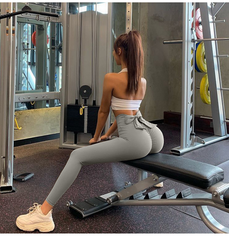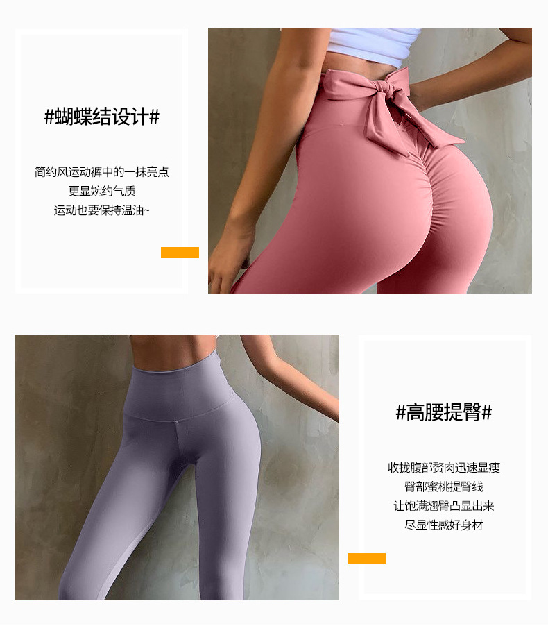 크로스보더 누드톤 하이웨이스트 요가 팬츠 여성용 리본 복숭아힙업 스포츠 피트니스 팬츠 요가복 루루 요가 팬츠