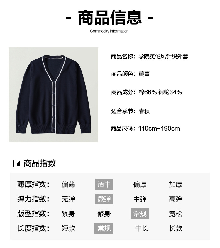 남아용 가디건 스웨터, 네이비 블루, 영국식 학생복, 학급 교복, 중대형 아동용 코트, 봄, 가을 캐주얼 및 다용도스토어 가기