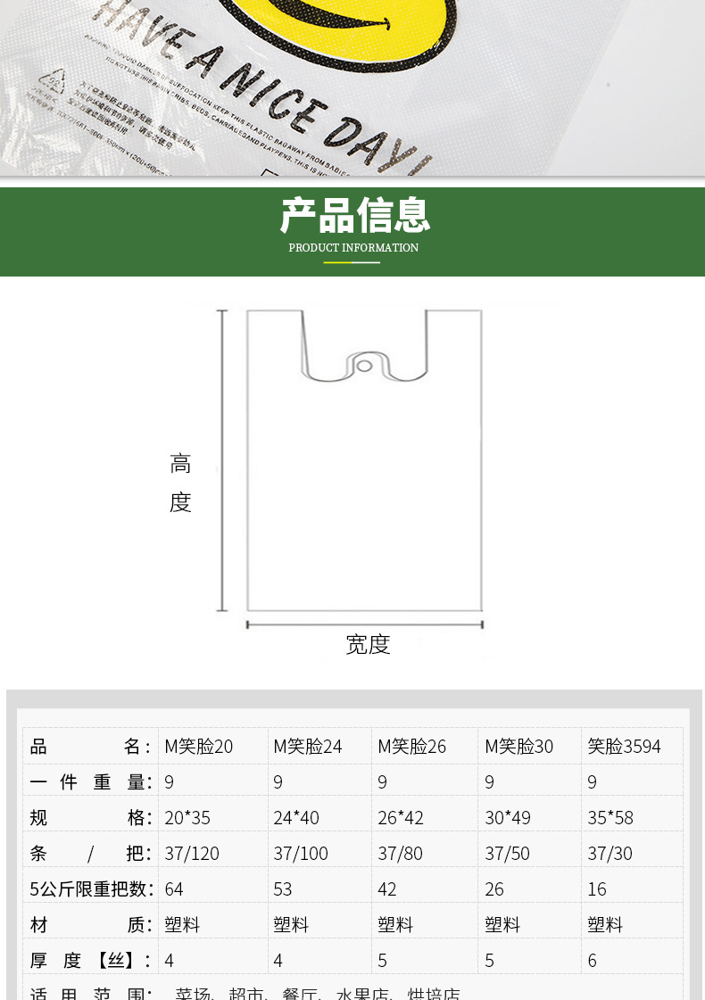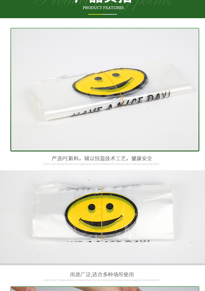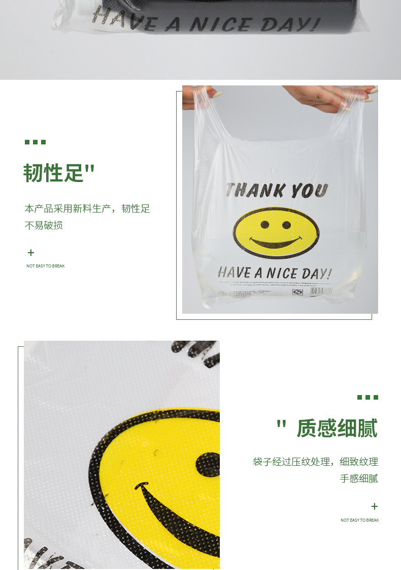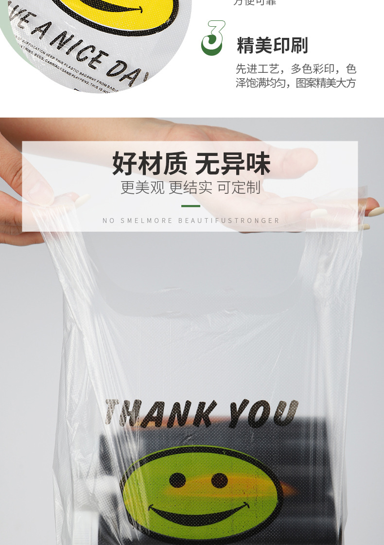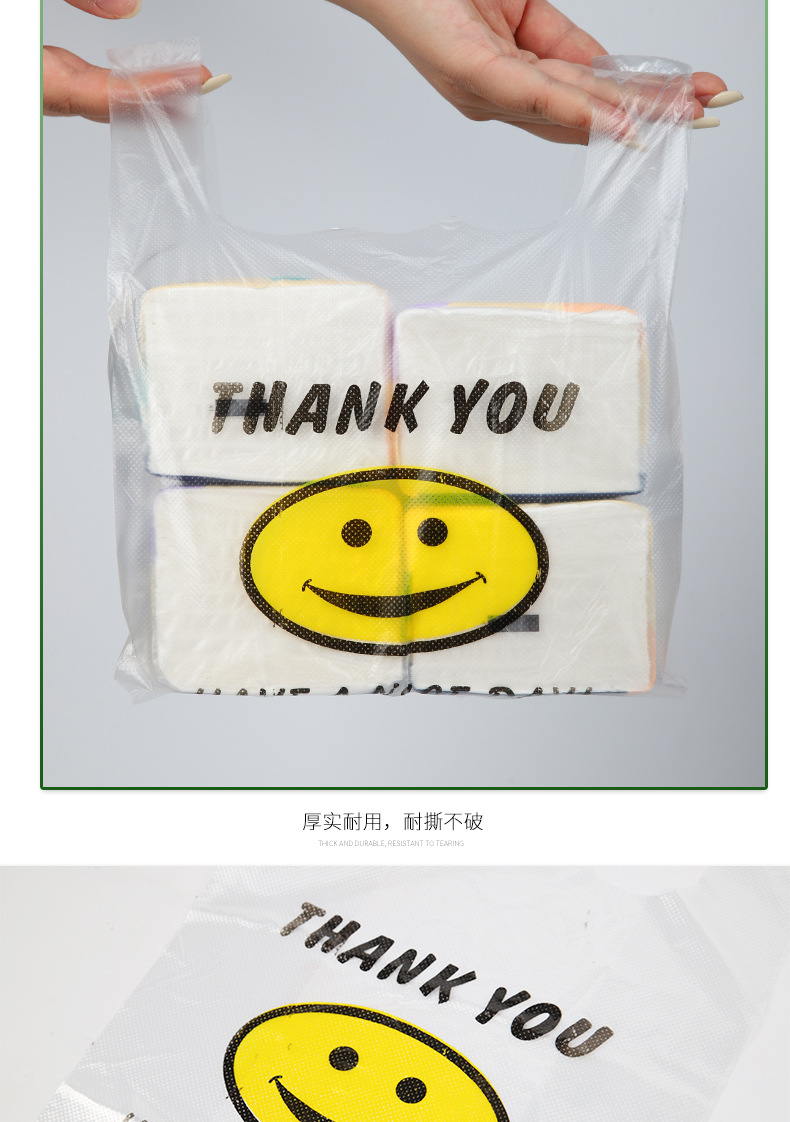투명 스마일 페이스 백 도매 편의점 슈퍼마켓 쇼핑백 휴대용 조끼 가방 과일 가방 테이크 아웃 비닐 봉투
