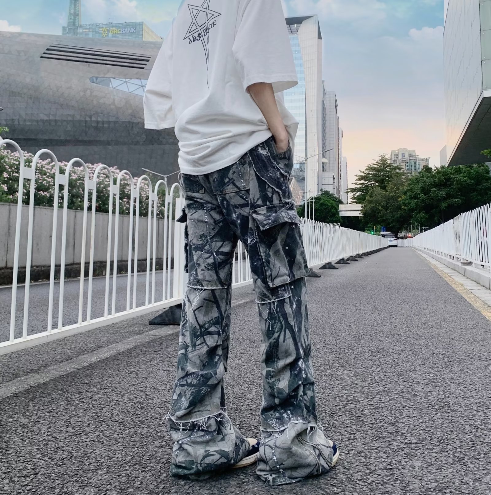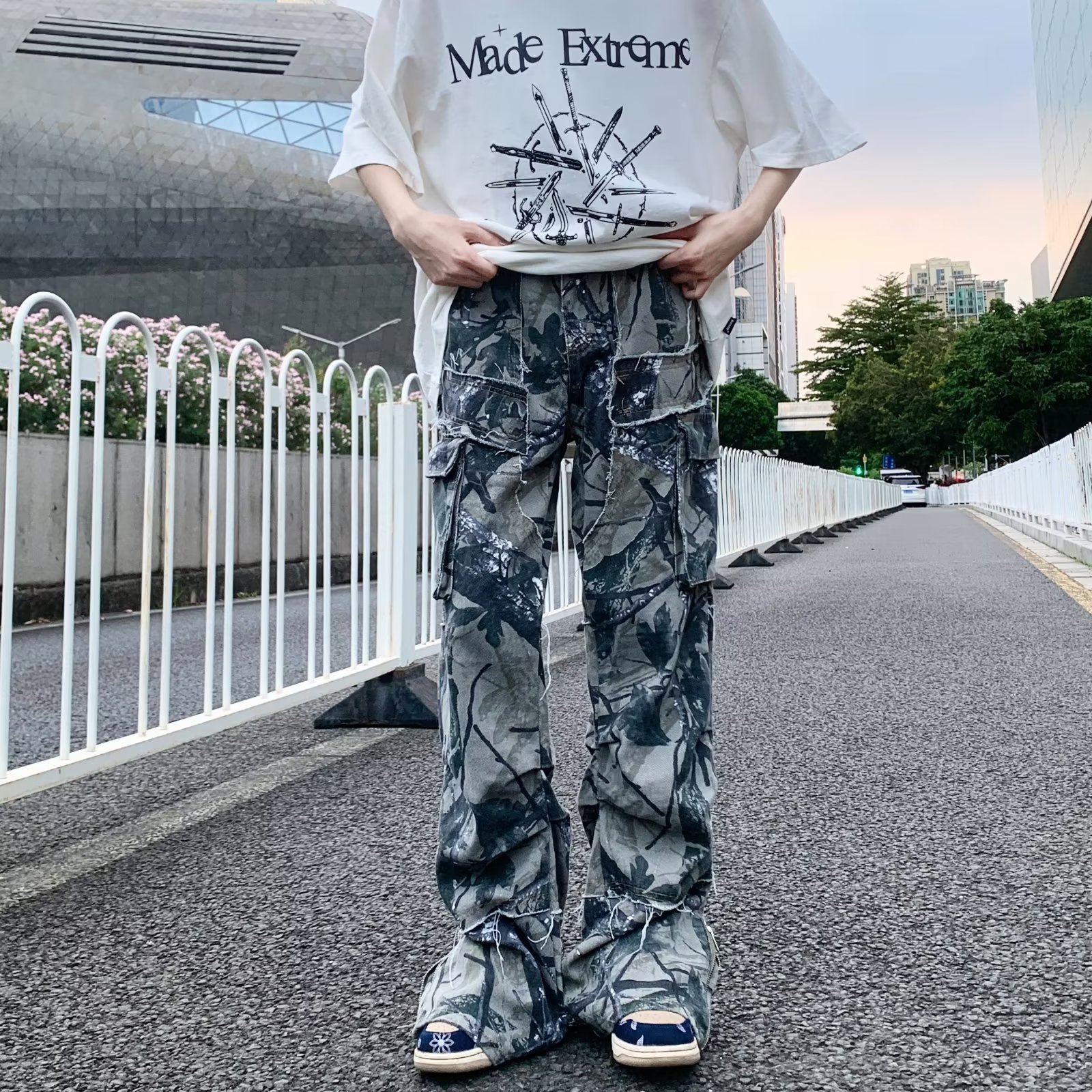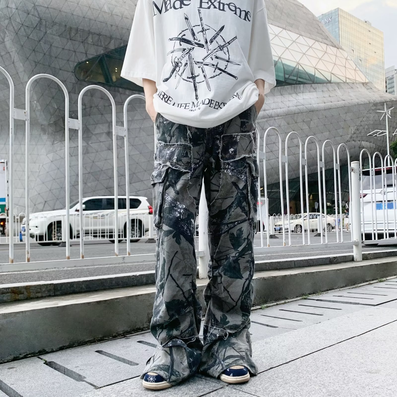 헐렁한 청바지 미국 복고풍 위장 멀티 포켓 청바지 남자의 하이 스트리트 힙합 스트레이트 바지 대외 무역스토어 가기