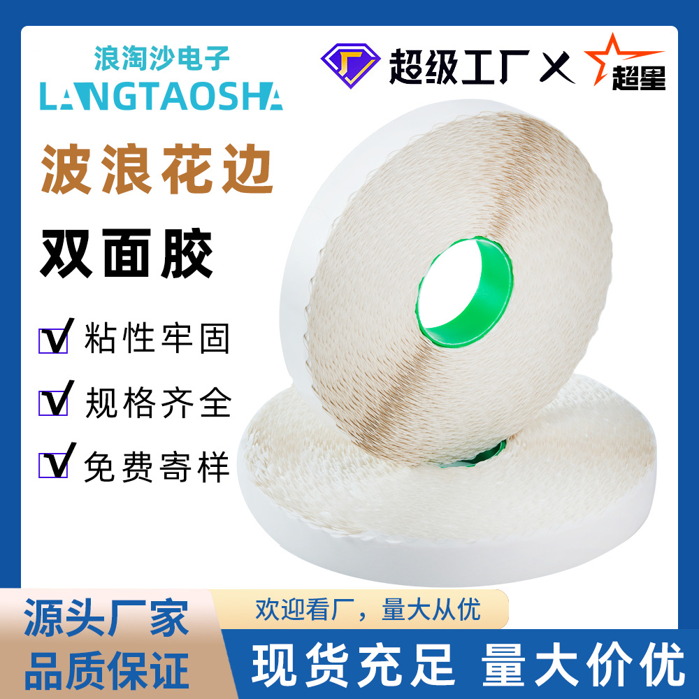 定制易撕拉链箱飞机盒花边双面胶 纸箱彩盒专用高粘波浪边双面胶