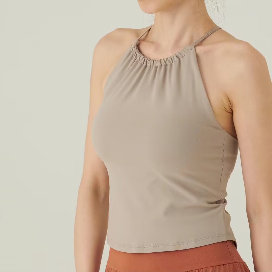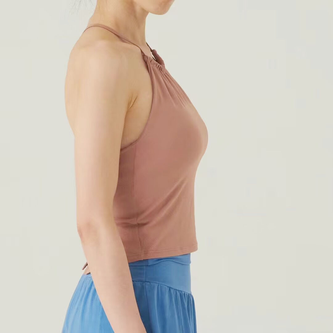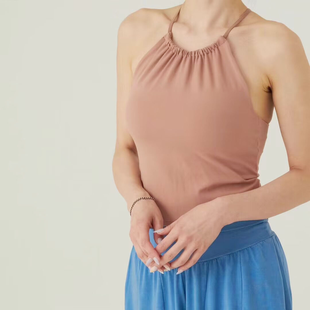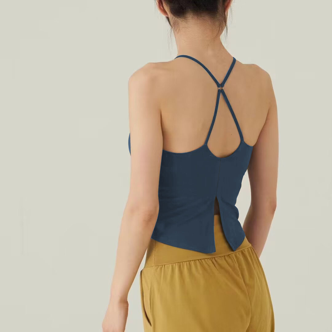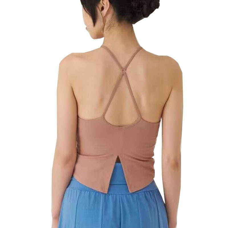 가슴 패드가있는 여성용 한국 요가 조끼 Dovetail 스플릿 고탄력 속건 스포츠 피트니스 러닝 트레이닝 슬링 탑