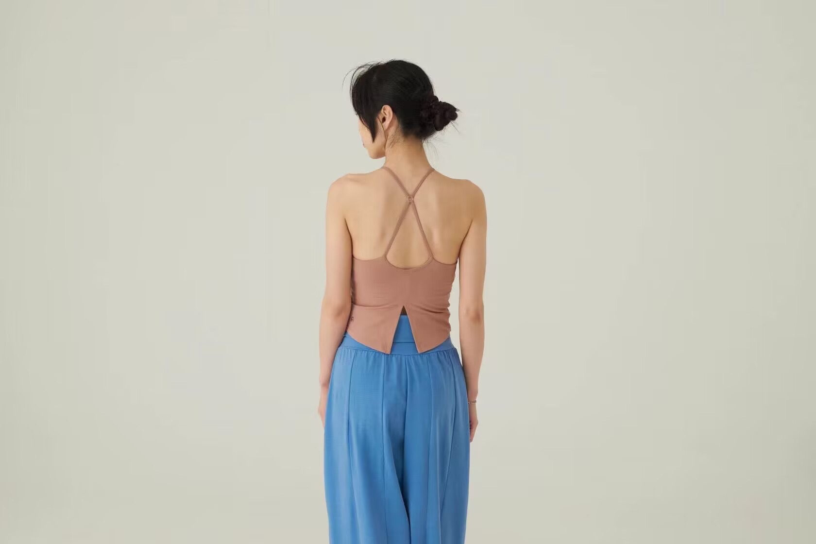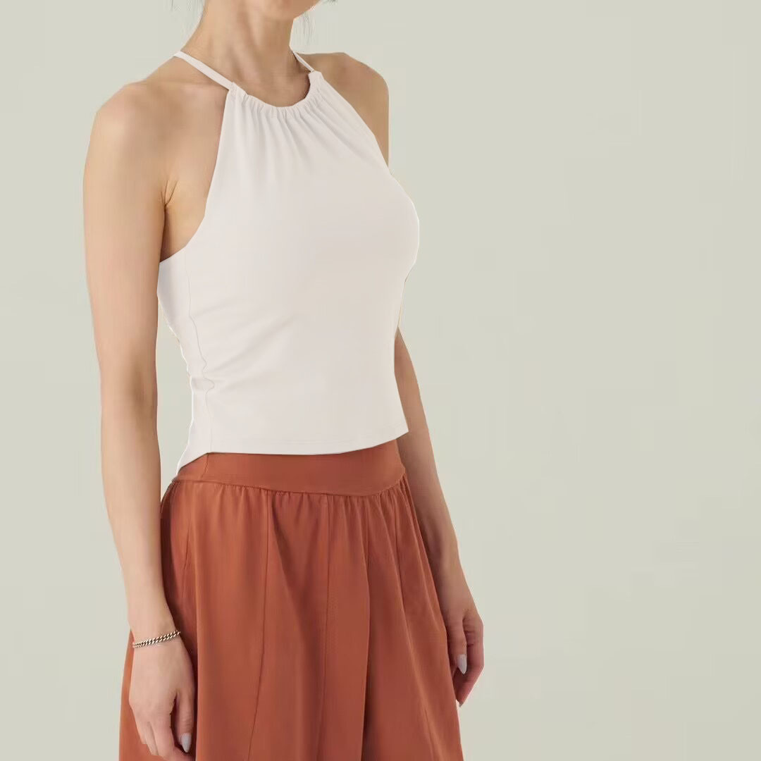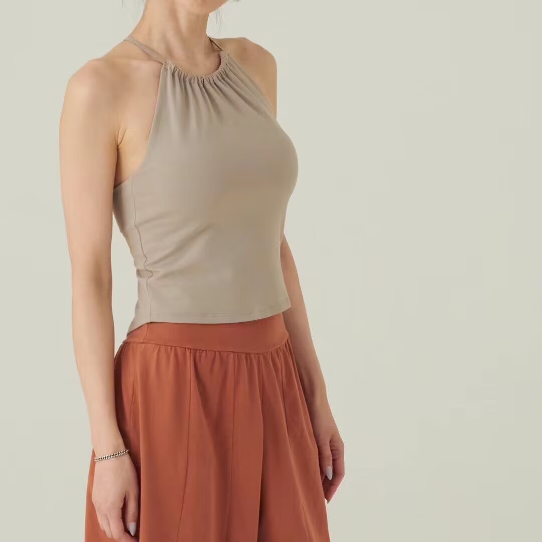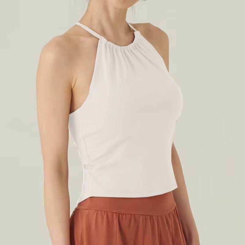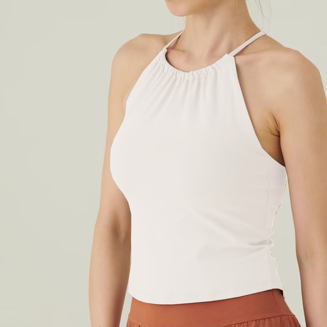 가슴 패드가있는 여성용 한국 요가 조끼 Dovetail 스플릿 고탄력 속건 스포츠 피트니스 러닝 트레이닝 슬링 탑