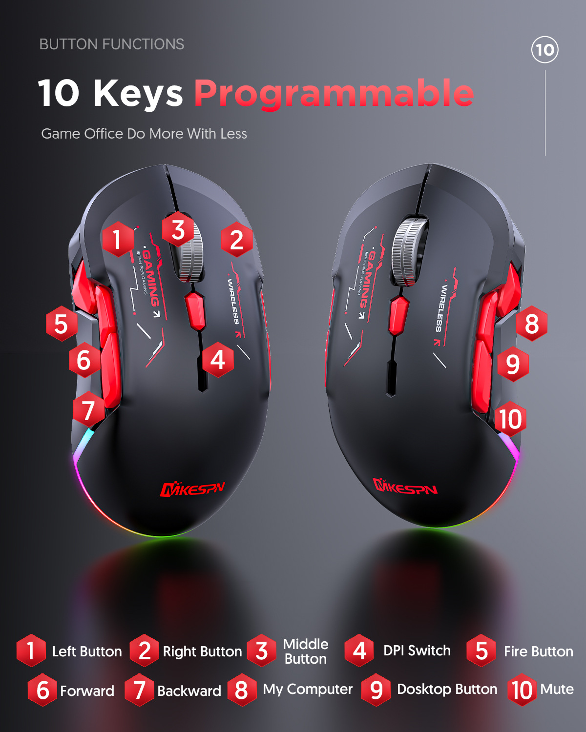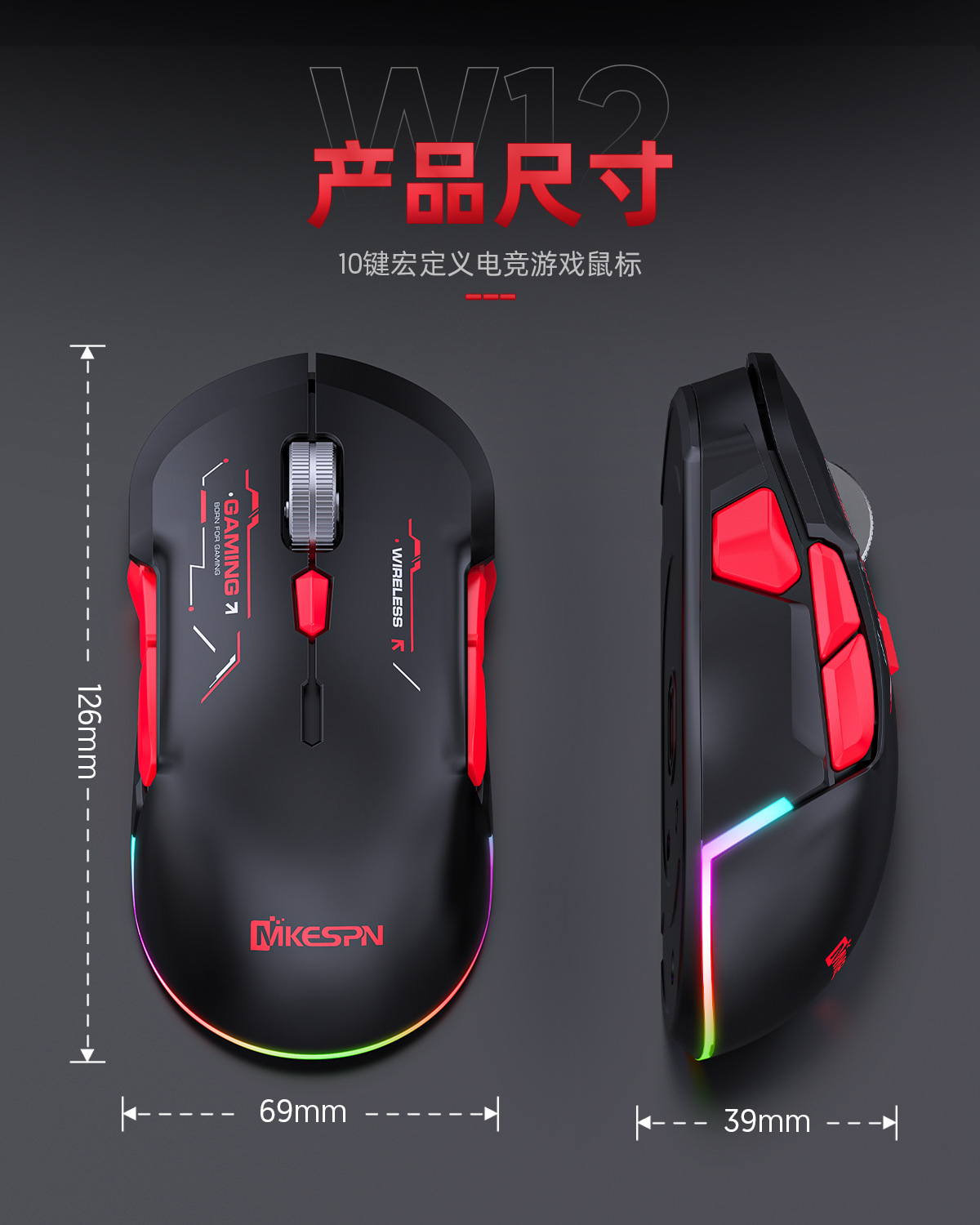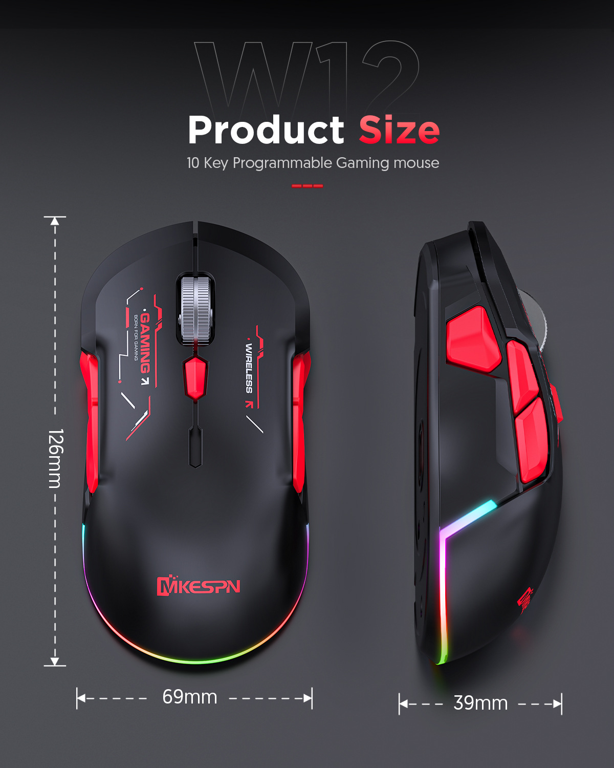 10 키 왼쪽 및 오른쪽 손 무선 블루투스 3 모드 다중 채널 매크로 정의 게임 마우스 원피스 배치 컴퓨터 액세서리