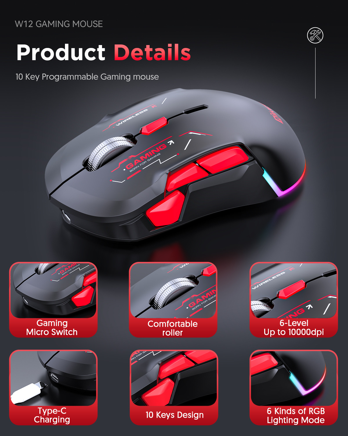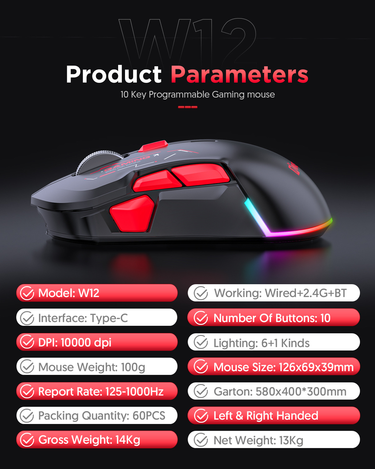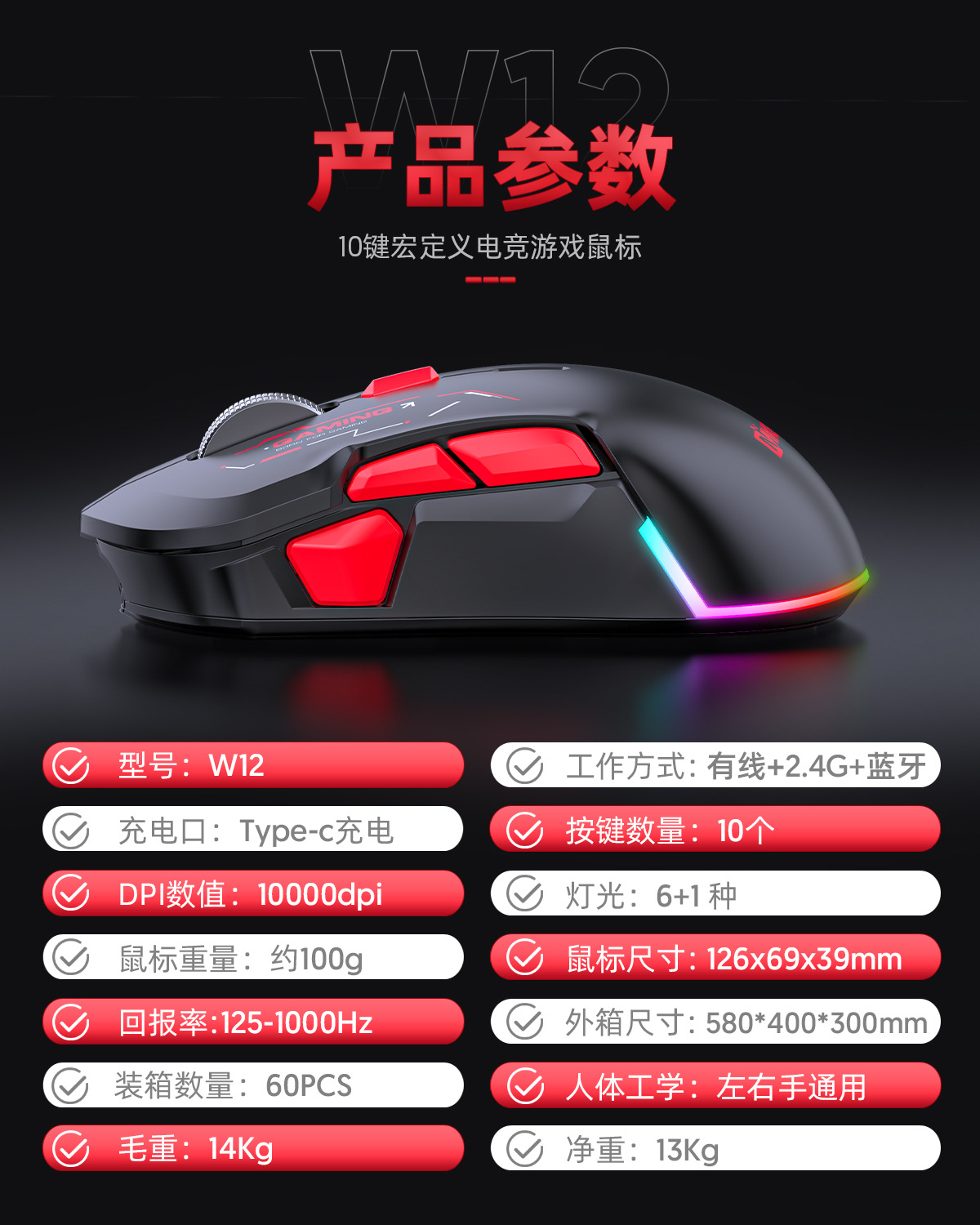 10 키 왼쪽 및 오른쪽 손 무선 블루투스 3 모드 다중 채널 매크로 정의 게임 마우스 원피스 배치 컴퓨터 액세서리