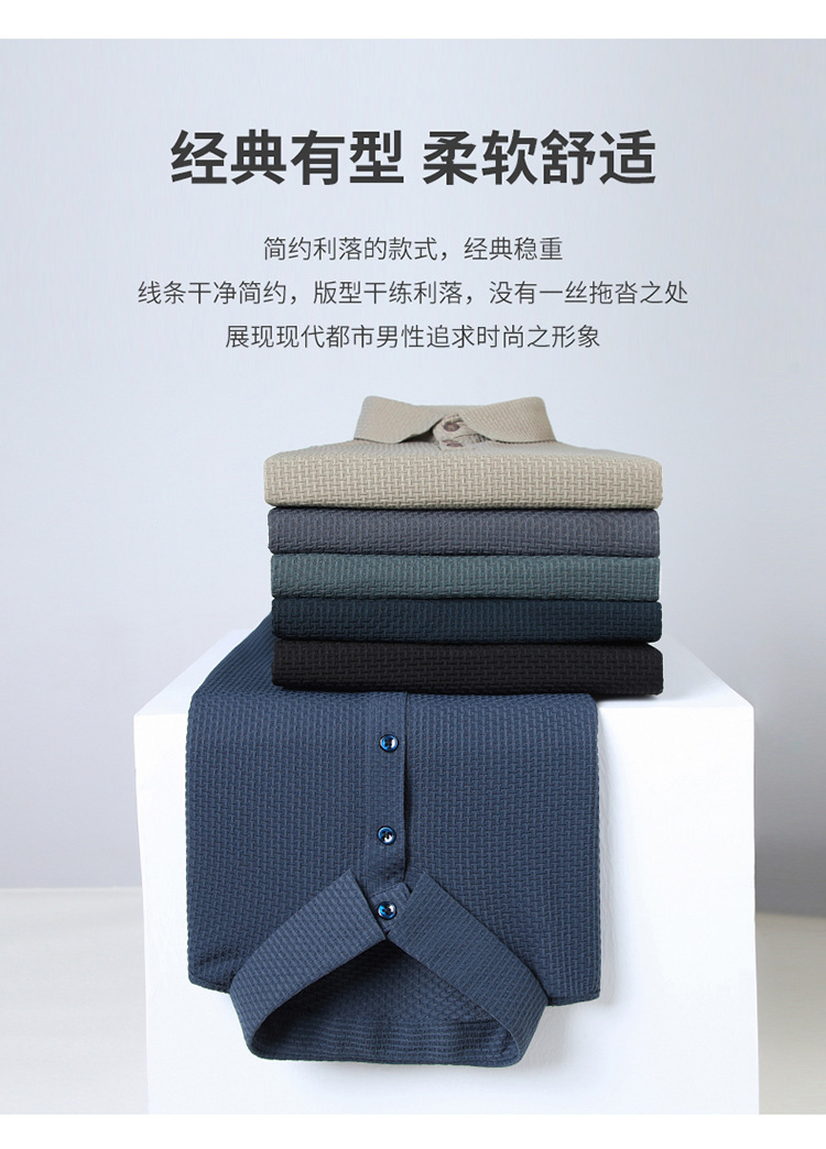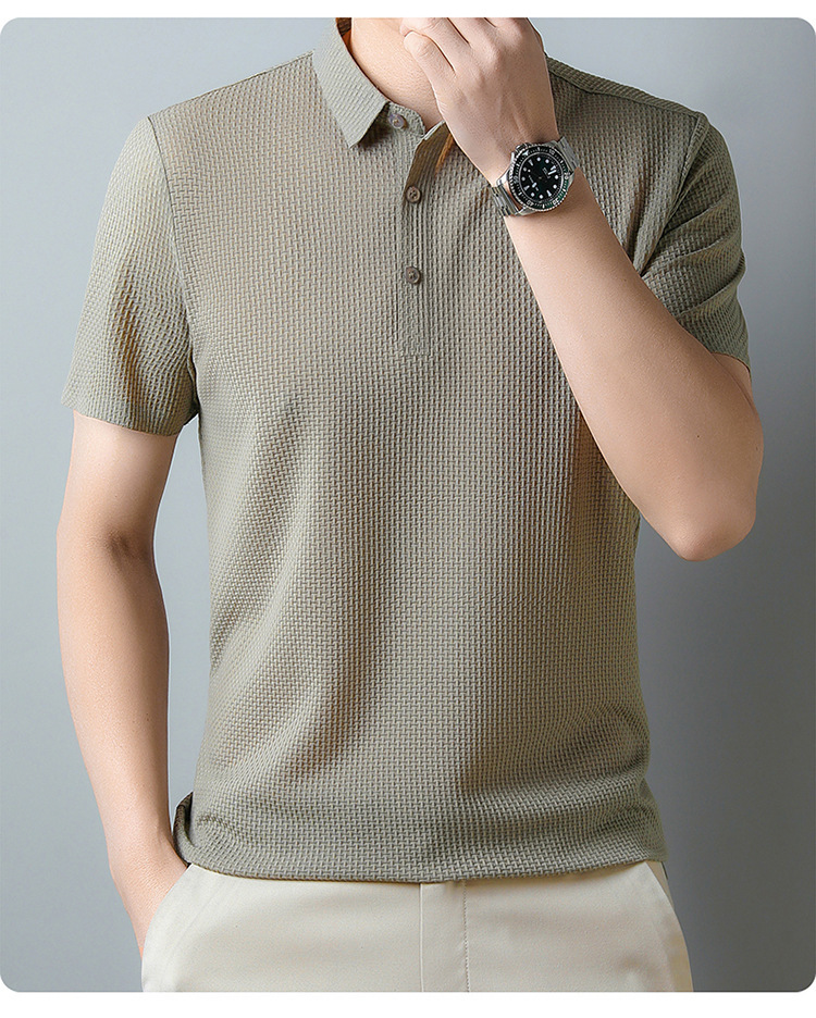 2025 여름 아이스 실크 남성 폴로 셔츠 캐주얼 남성 자카드 옷깃 비철 반팔 티셔츠 배송