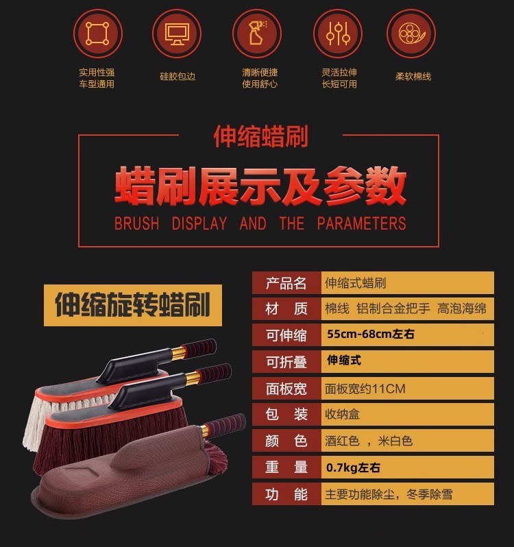 순면 자동차 먼지떨이 먼지 제거 왁스 브러쉬 자동차 걸레 알루미늄 합금 텔레스코픽 브러쉬 세차 걸레 자동차 청소