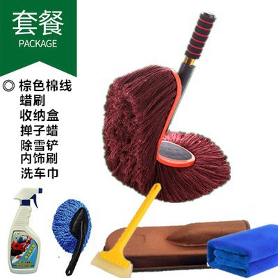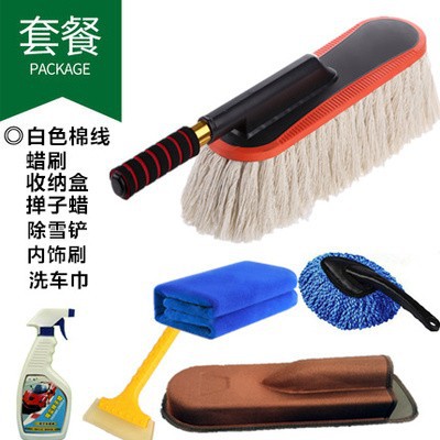 • 베이지 자동차 브러시 + 브러시 상자 + 먼지떨이 왁스 + 인테리어 브러시