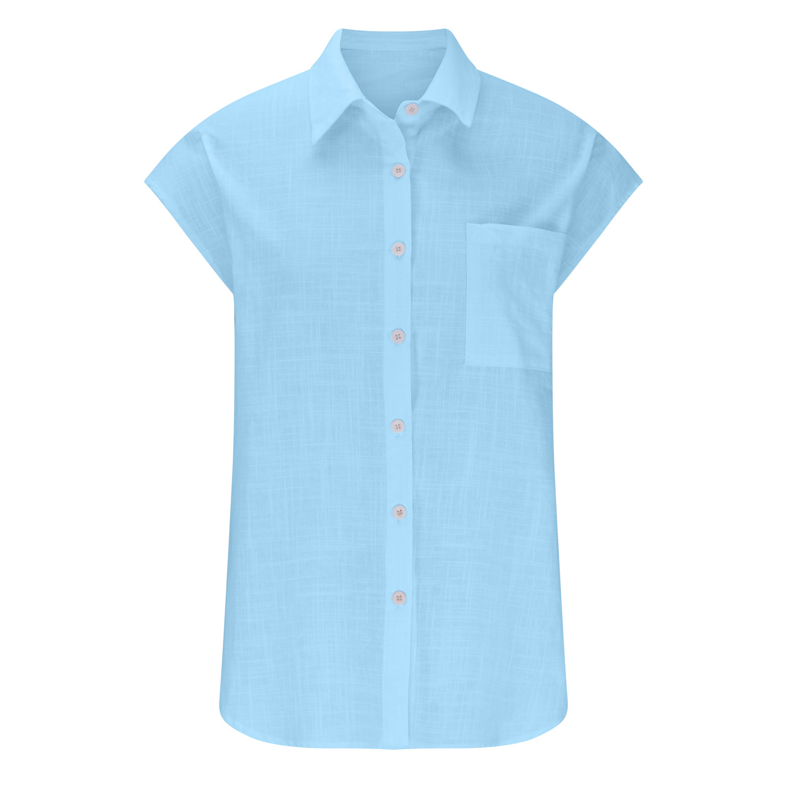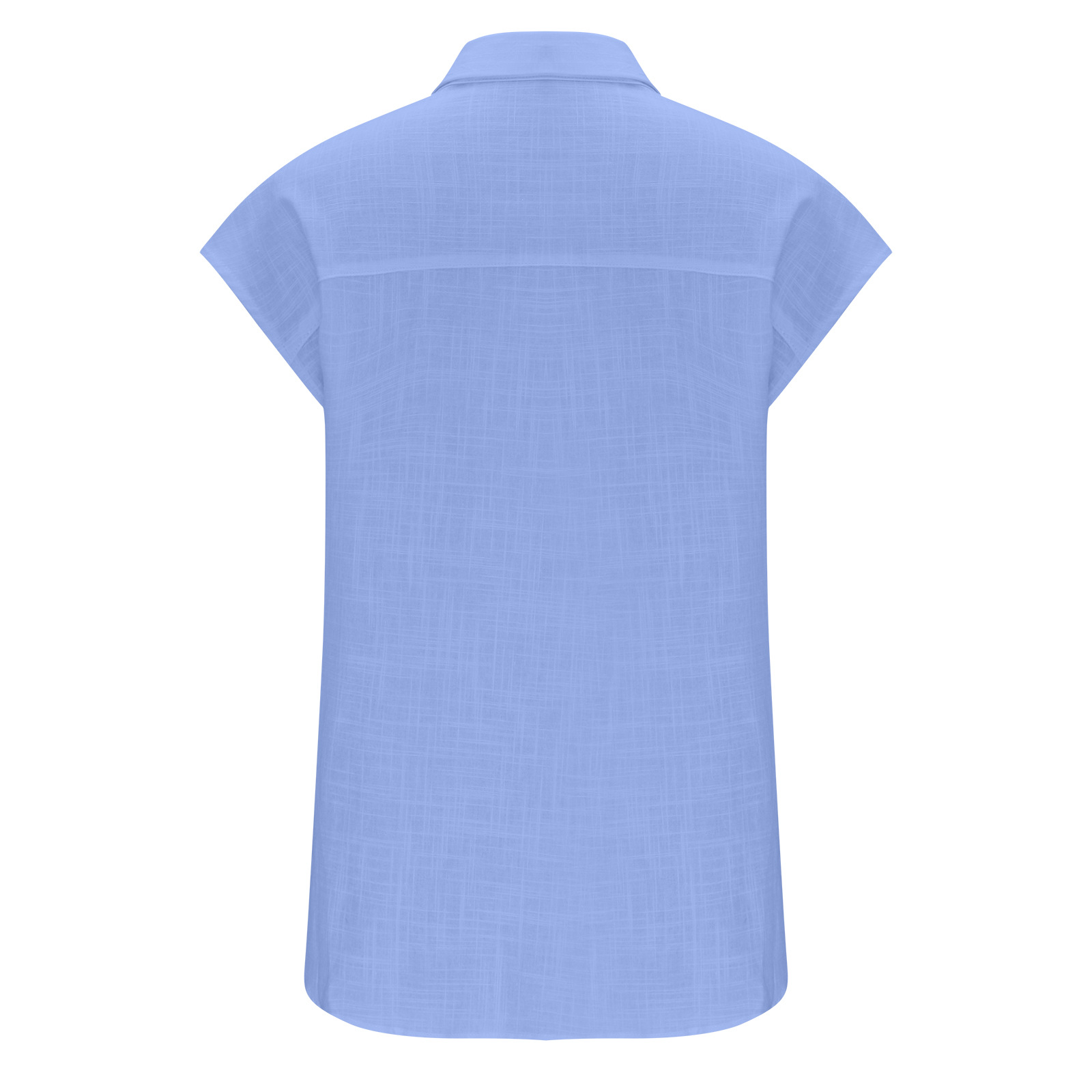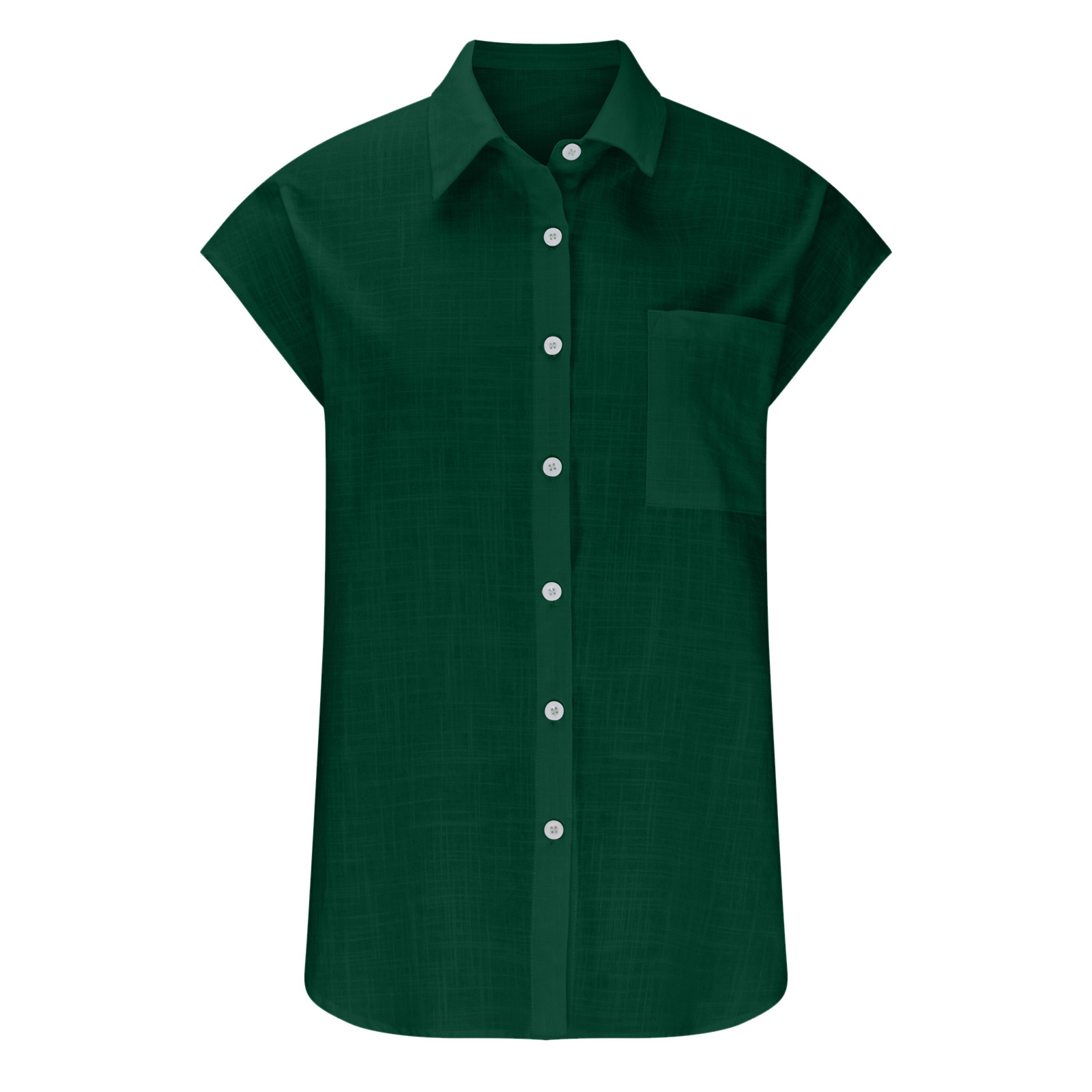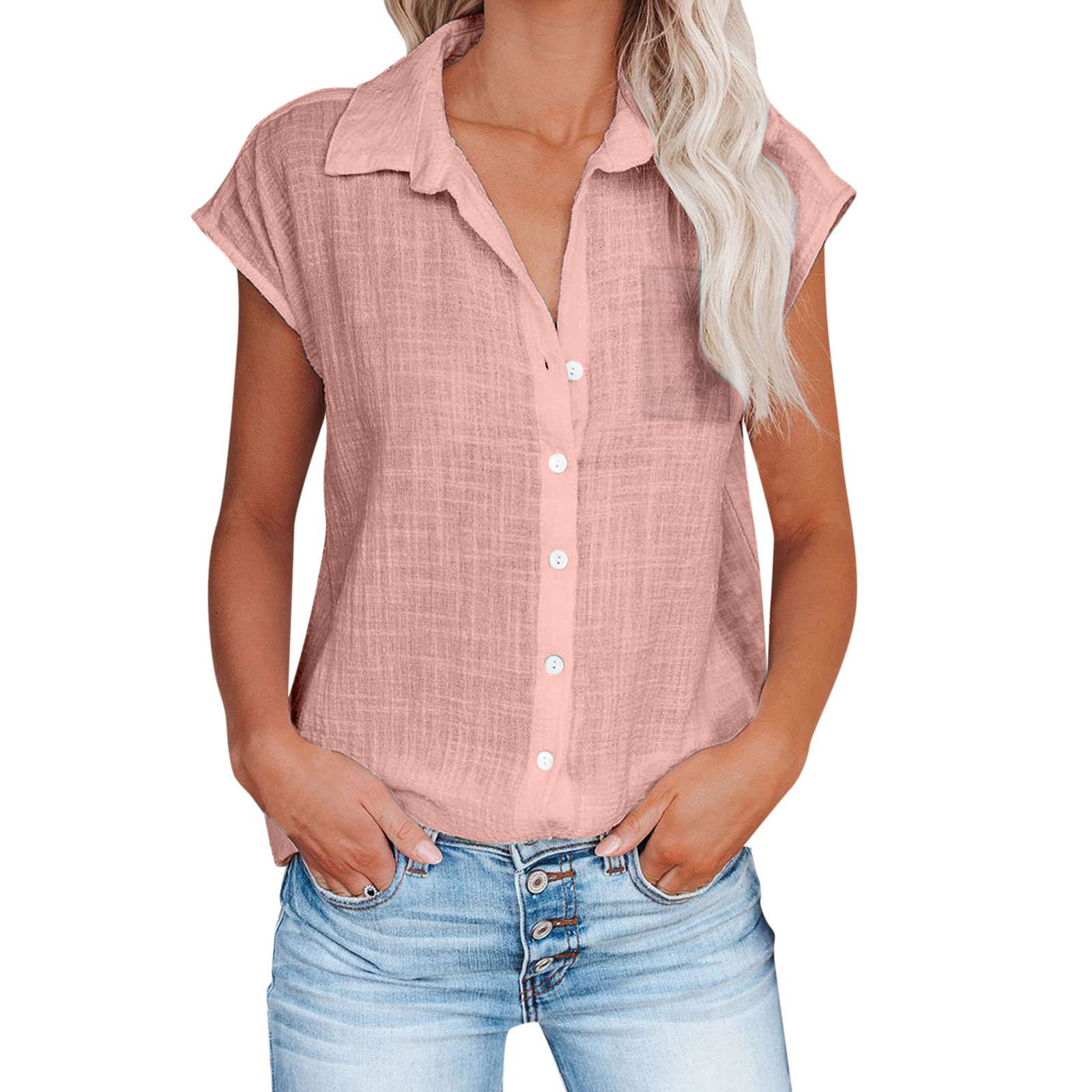 2023 여름 새로운 단색 포켓 셔츠 여성 유럽과 미국의 배팅 슬리브 캐주얼 짧은 소매 탑스토어 가기
