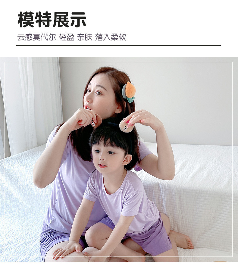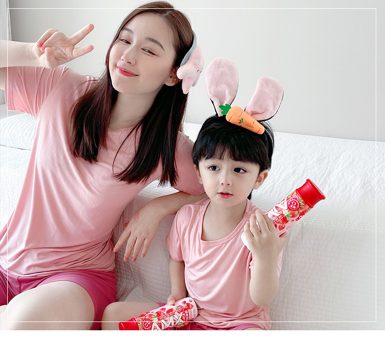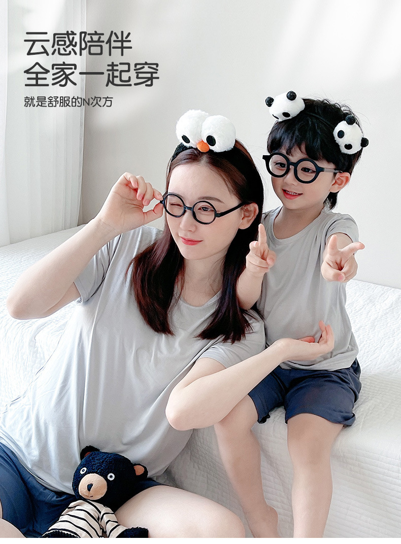 부모-자식 가정 옷 세트 모달 어린이 잠옷 여름 얇은 반팔 캐주얼 소년과 소녀 세트 통기성스토어 가기