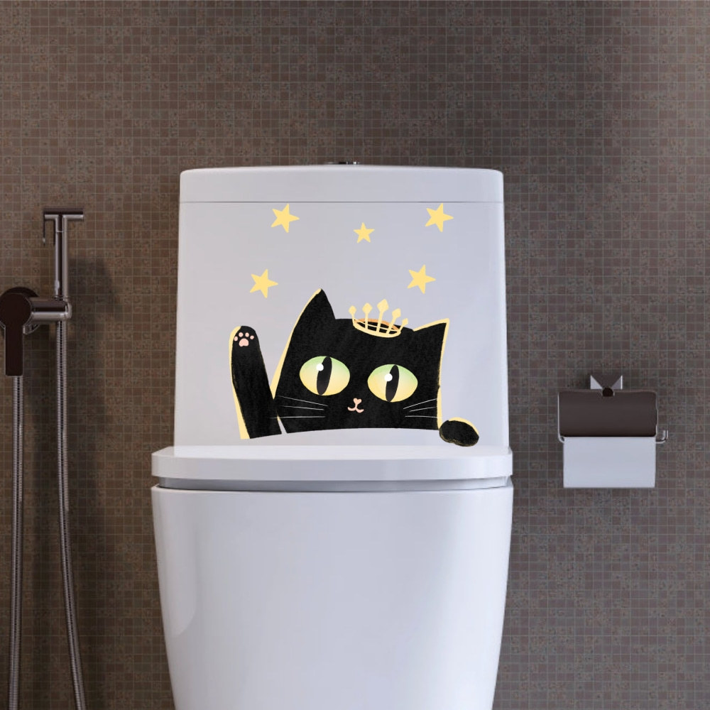 Yiyao 만화 귀여운 스타 크라운 키티 화장실 스티커 욕실 화장실 추악한 장식 방수 스티커스토어 가기
