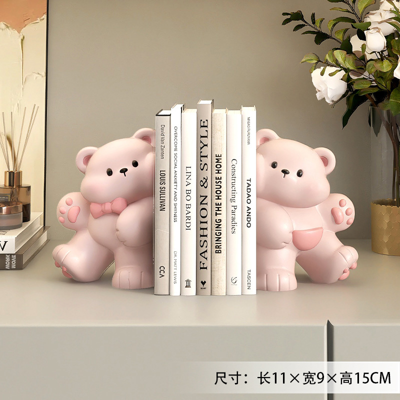 • 귀여운 곰 북엔드 장식-핑크 (책은 포함되지 않음)